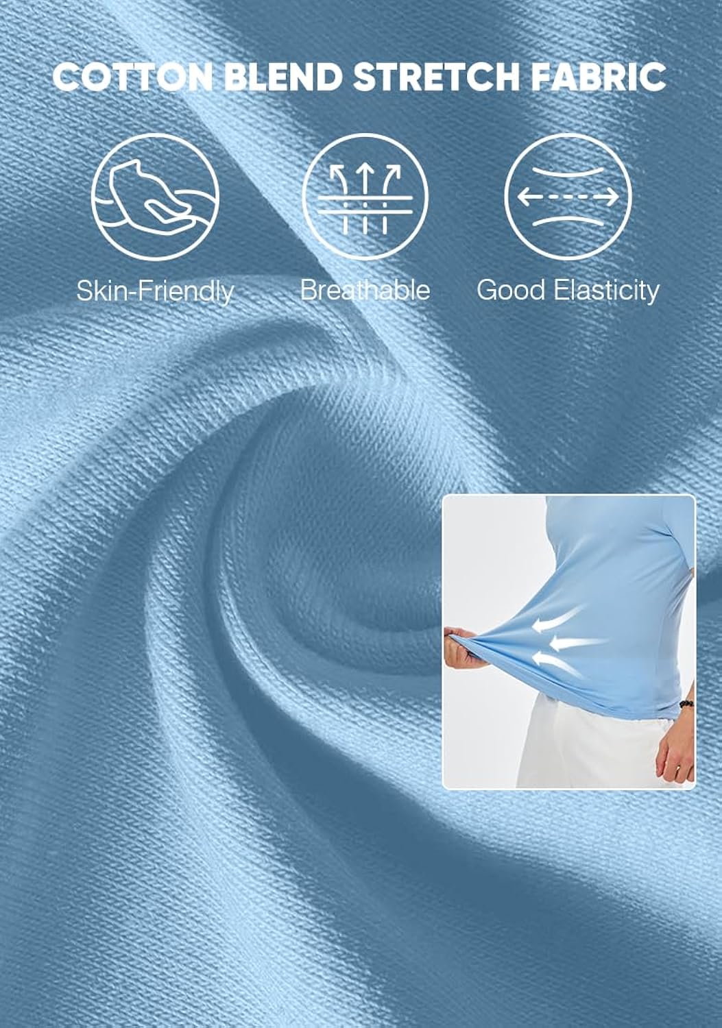 High-Quality Materials: Made from a blend of 62% polyester, 32% cotton, and 6% elastane, these shirts are soft, comfortable, and durable, ensuring that they'll last you for many summers to come.