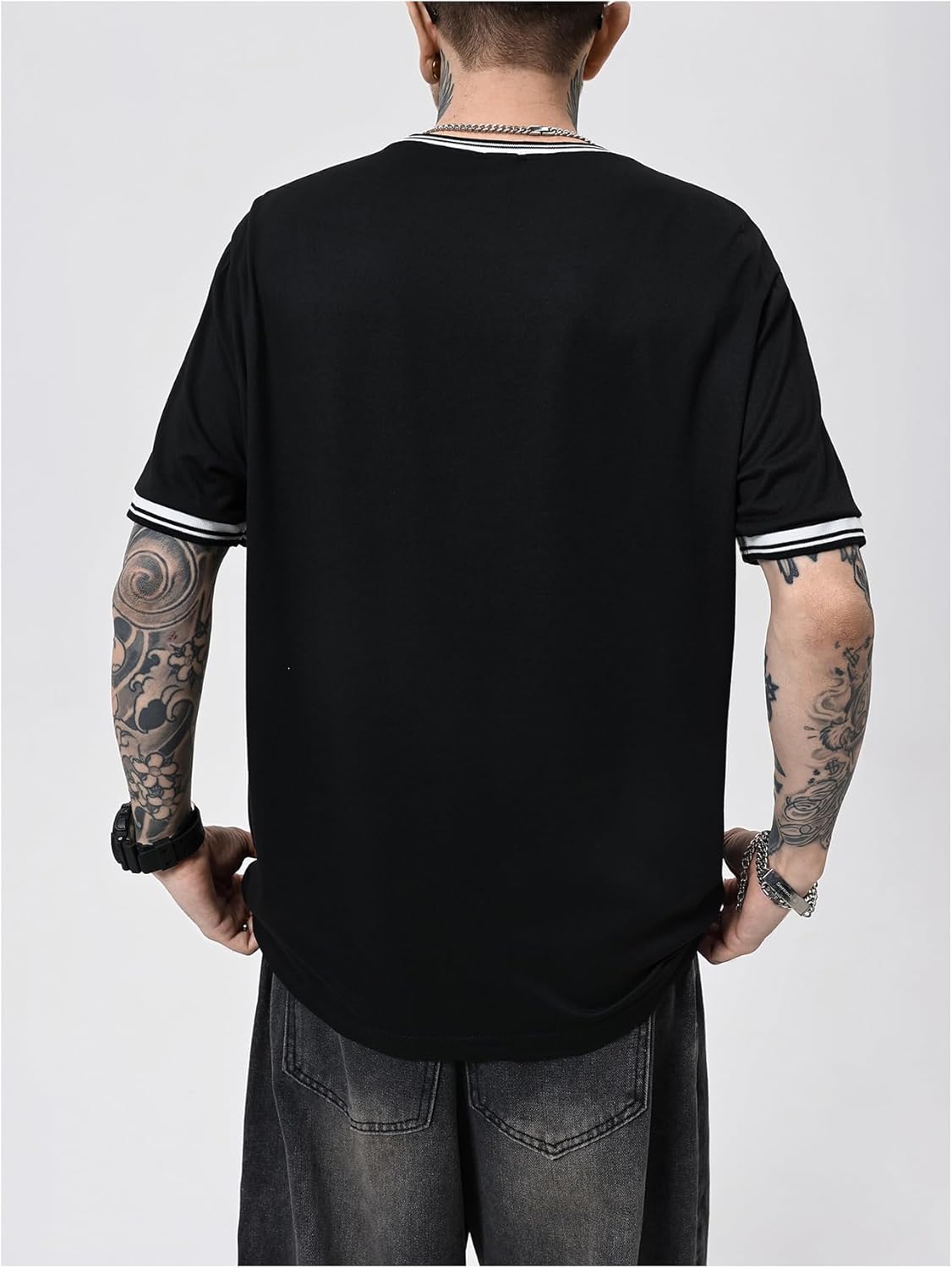 SOLY HUX Men's Crown Letter Print Striped Trim Tee Tops Short Sleeve Crew Neck Summer T Shirt