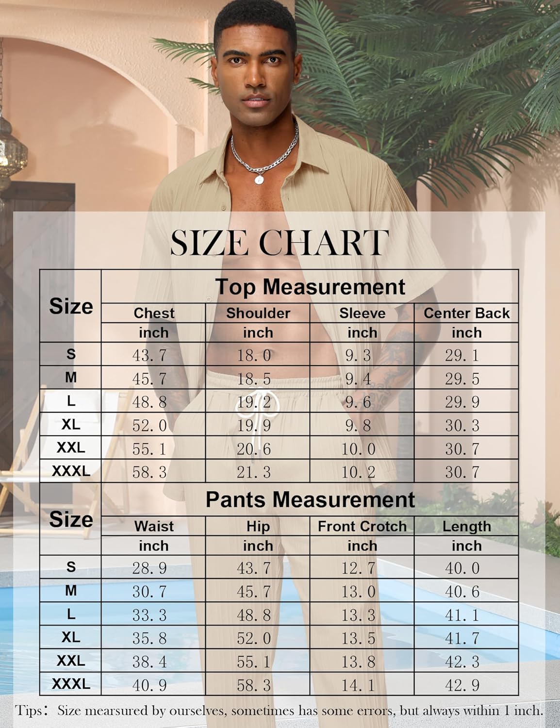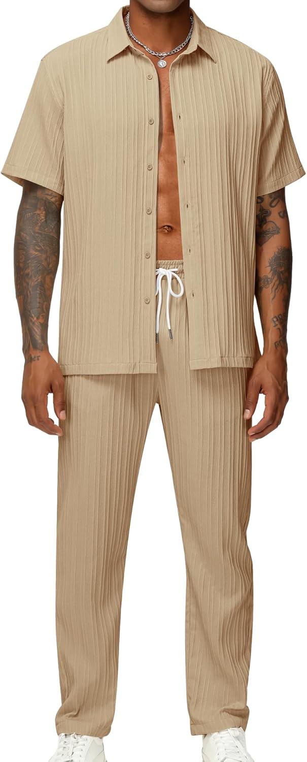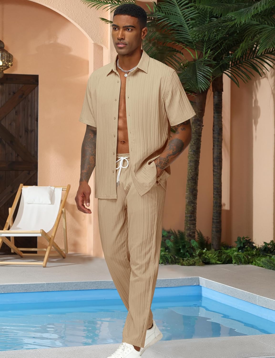 Mens Leisure Suits 2 Piece: Mens fashion textured set perfect for any occasion like streetwear, wedding, anniversary trips, cruises, birthdays, vacations, or beaches. This Classic Casual Matching Outfits is also perfect gift for a couple/families/friends.