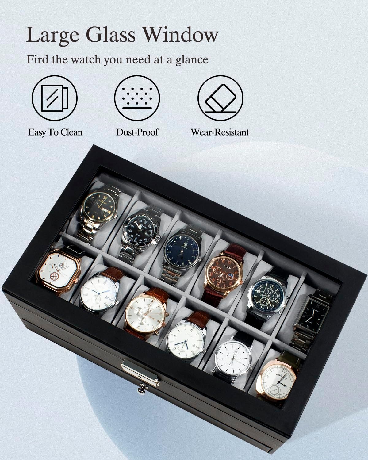 [???????????????????? ?????? ????????????????????????]: The interior is lined with high-quality, soft material that cushions your watches and jewelry, preventing scratches and other potential damage. Additionally, the watch box is designed to keep dust at bay, ensuring that your items remain in pristine condition. This level of protection is crucial for maintaining the longevity and appearance of your cherished collection.