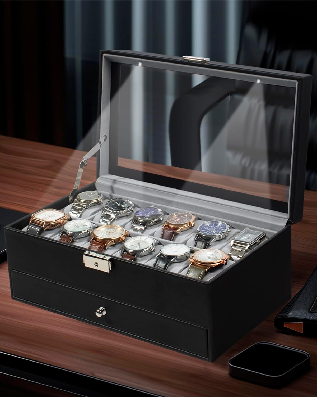 [???????????? ????????????????????]: When you open the box, a soft, ambient light illuminates your watches, making it easy to select one even in dim environments. This automatic lighting provides convenience and elegance while conserving energy by turning off when the box is close.