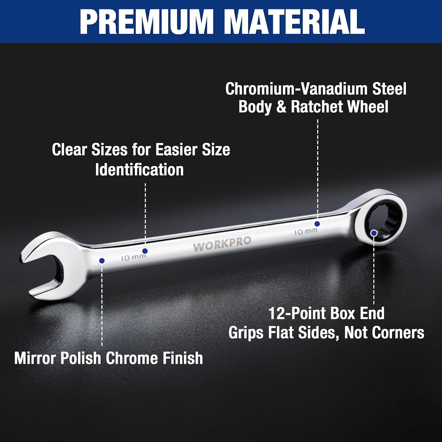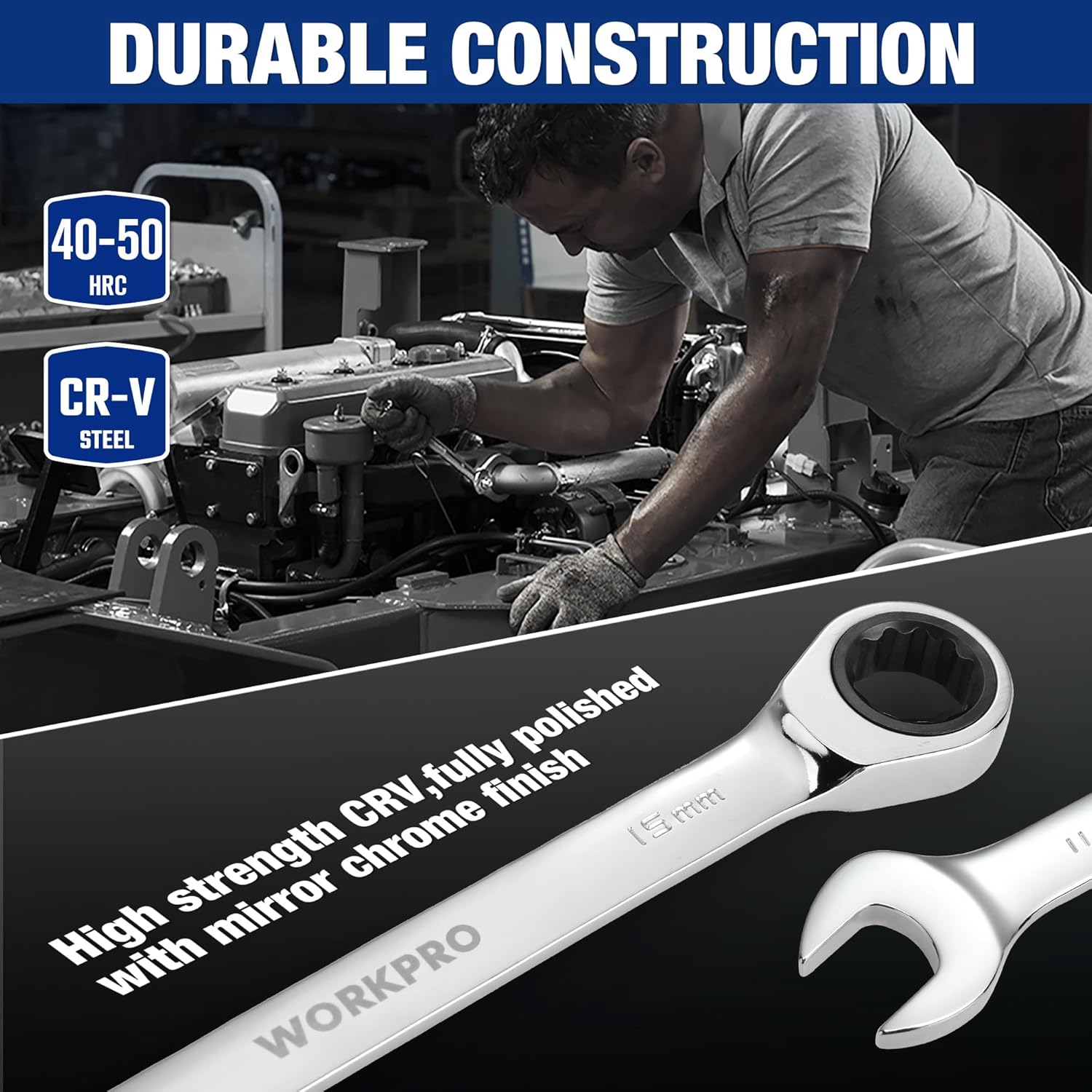 Versatile Applications: WORKPRO combination wrench sets have a wide range of application scenarios, including motorcycle repair, auto repair, home projects, bicycle repair, machinery repairs, garage engineering, and so on.