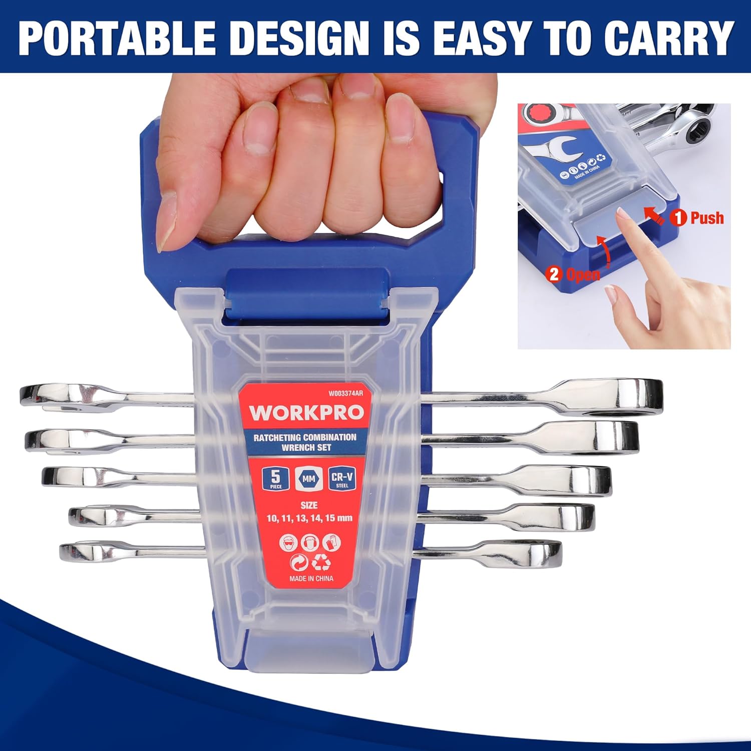 WORKPRO Ratcheting Wrench Set, Metric, 5-piece Ratcheting Combination Wrench Set, 10mm, 11mm, 13mm, 14mm, 15mm, 12-Point, ...