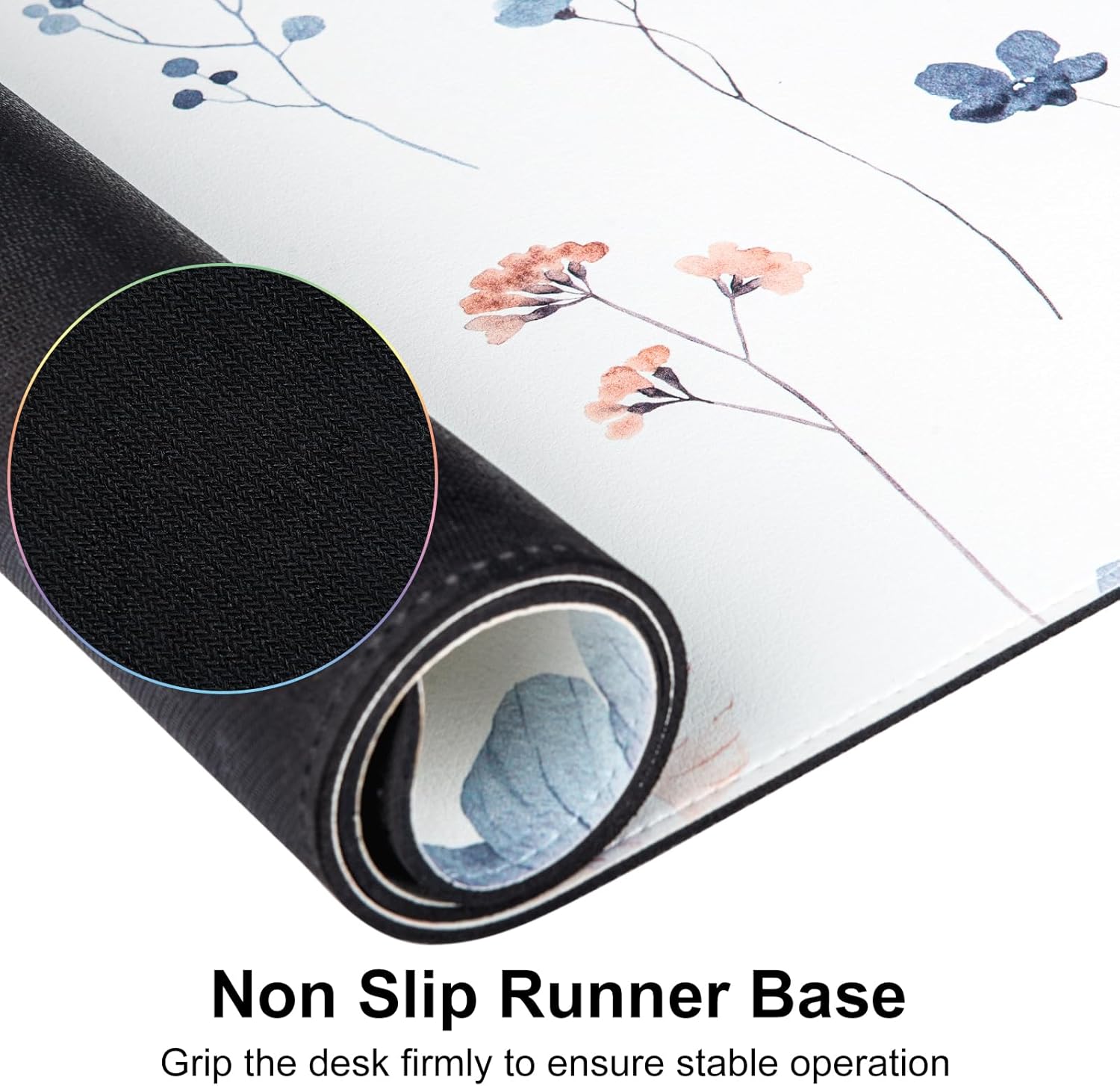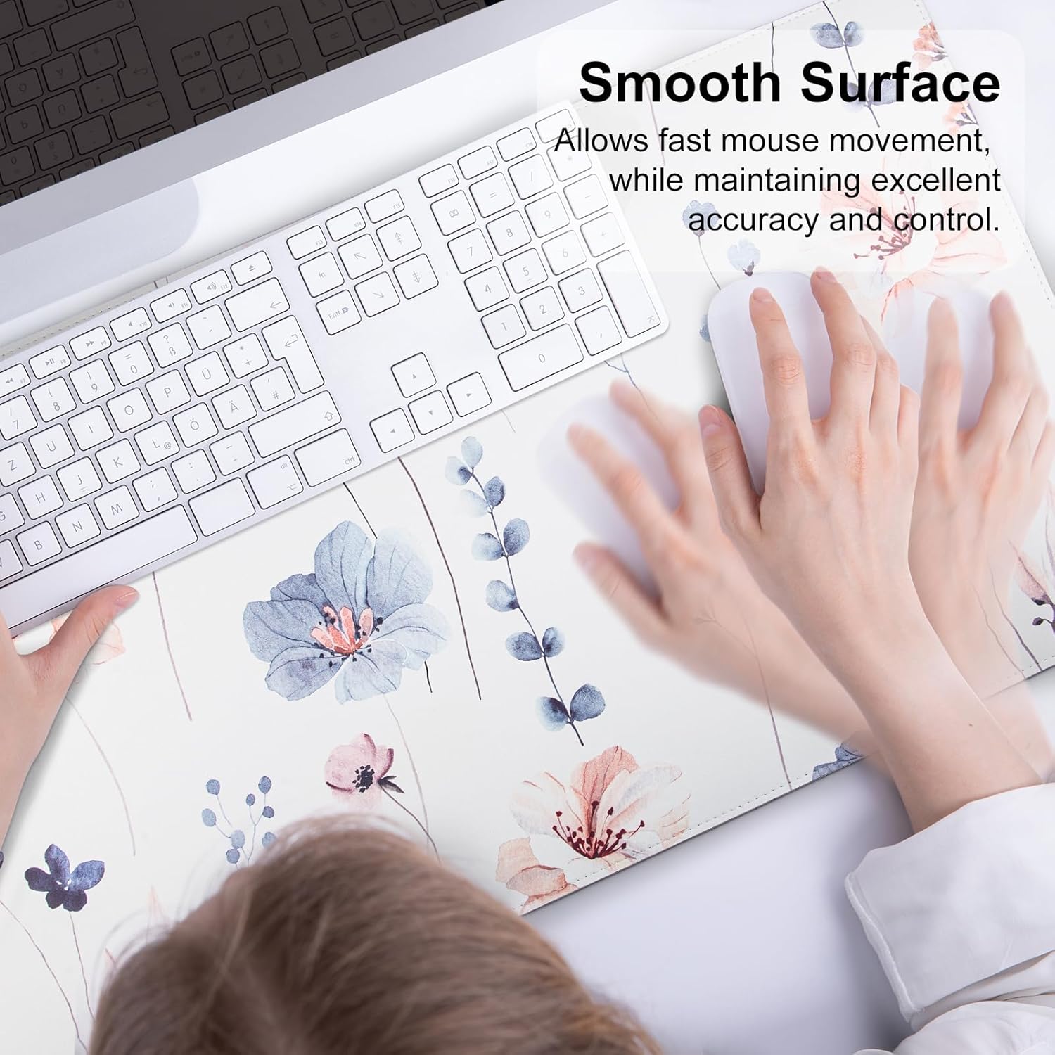 QIYI Large Mouse Pad for Desk, Floral Computer Desk Mat for Keyboard and Mouse, Non-Slip Rubber Base Waterproof Leather De...