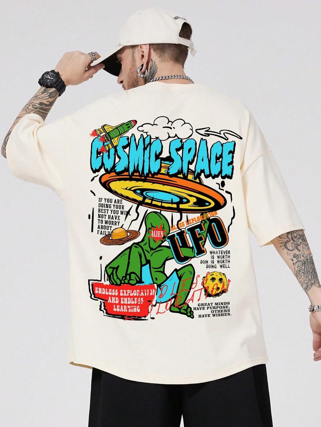 cartoon letter graphic crewneck short sleeve tee shirts tops for men