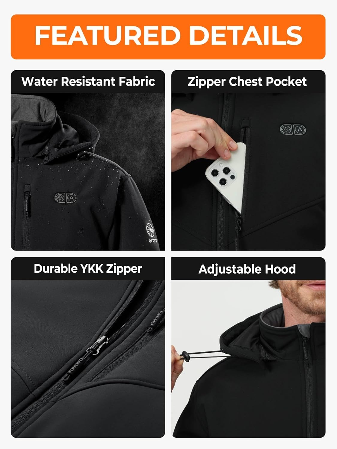 5 Heating Zones: Designed for maximum warmth, this jacket features five heating zones: two in the left and right pockets, two along the arms, and one in the middle of the back. These strategically placed zones provide targeted heat where it's needed most, ensuring comprehensive coverage.