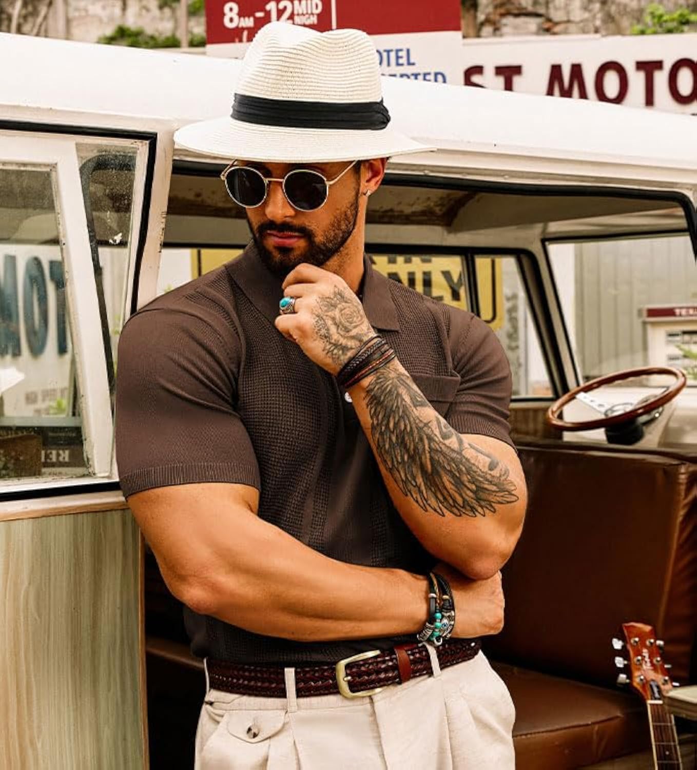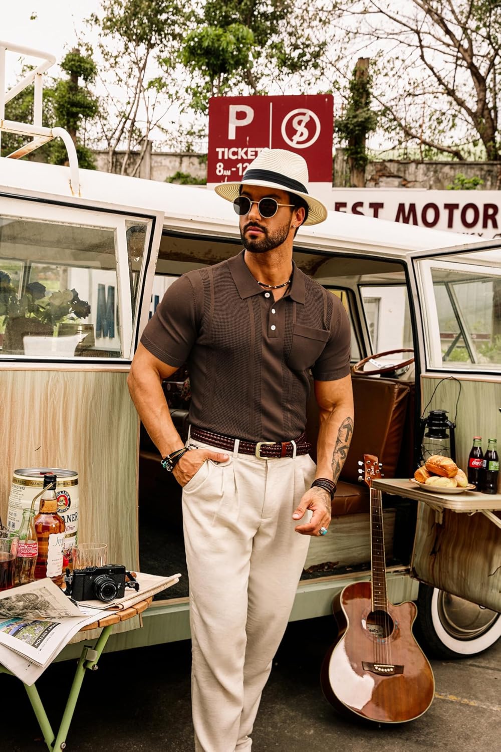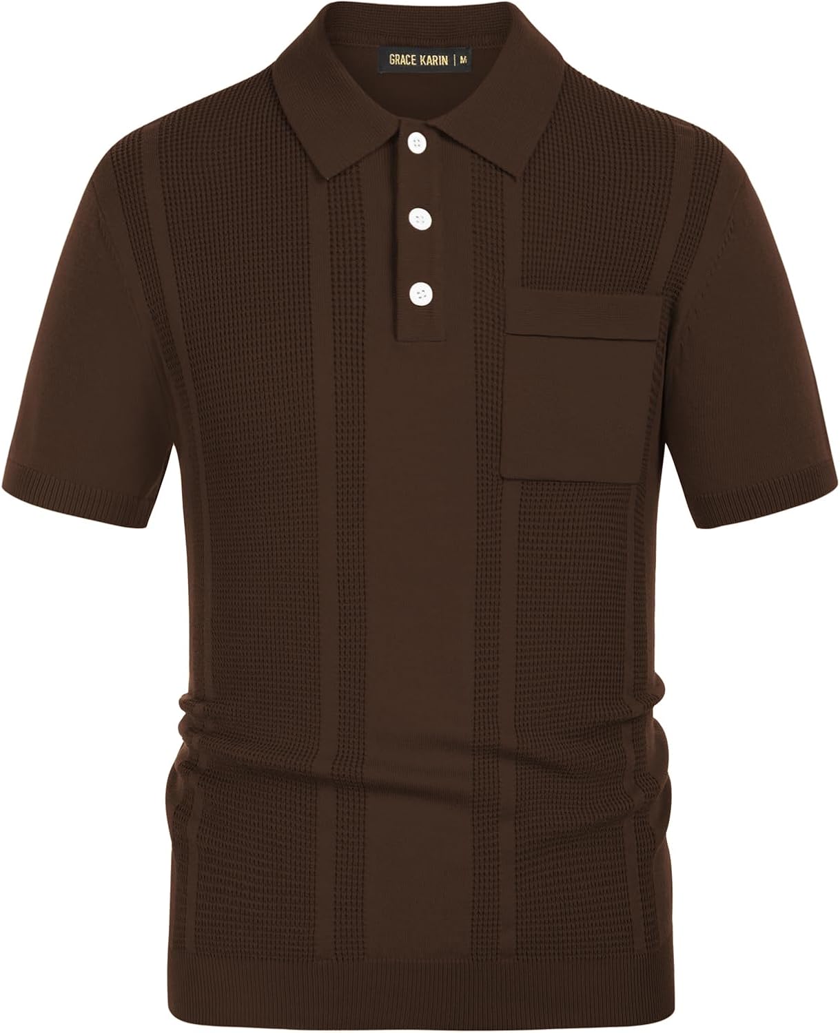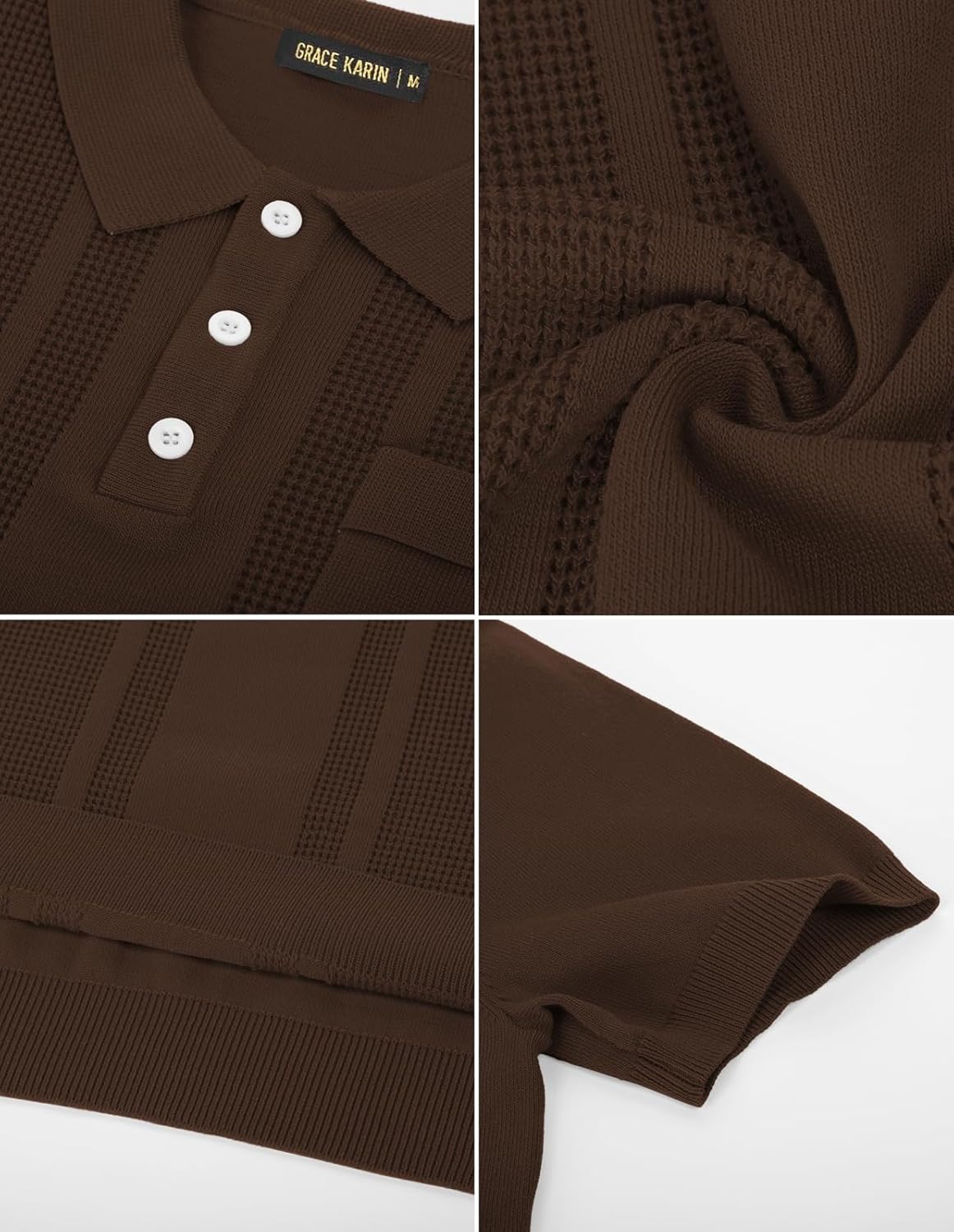 GRACE KARIN Men's Knit Polo Shirts Short Sleeve Texture Lightweight Golf Shirts Sweater