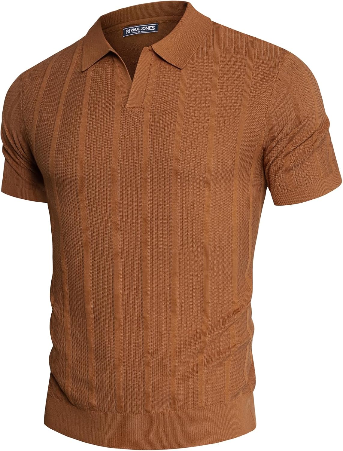 PJ PAUL JONES Mens Polo Shirts Textured Knit V-Neck Summer Shirts