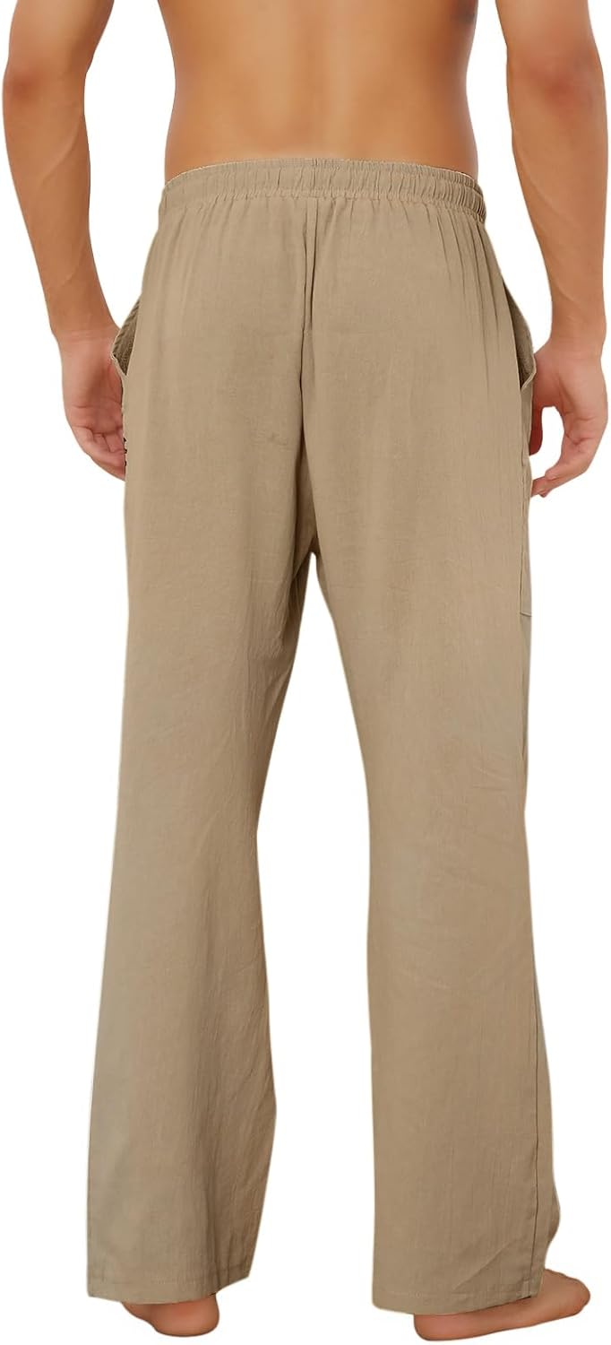 【Classic Design】: The design of the straight trousers visually changes your leg type and the plain and loose fit makes wearing super good-looking. Light-colored linen pants can be a bit translucent, so it is recommended to match them with light-colored underwear.