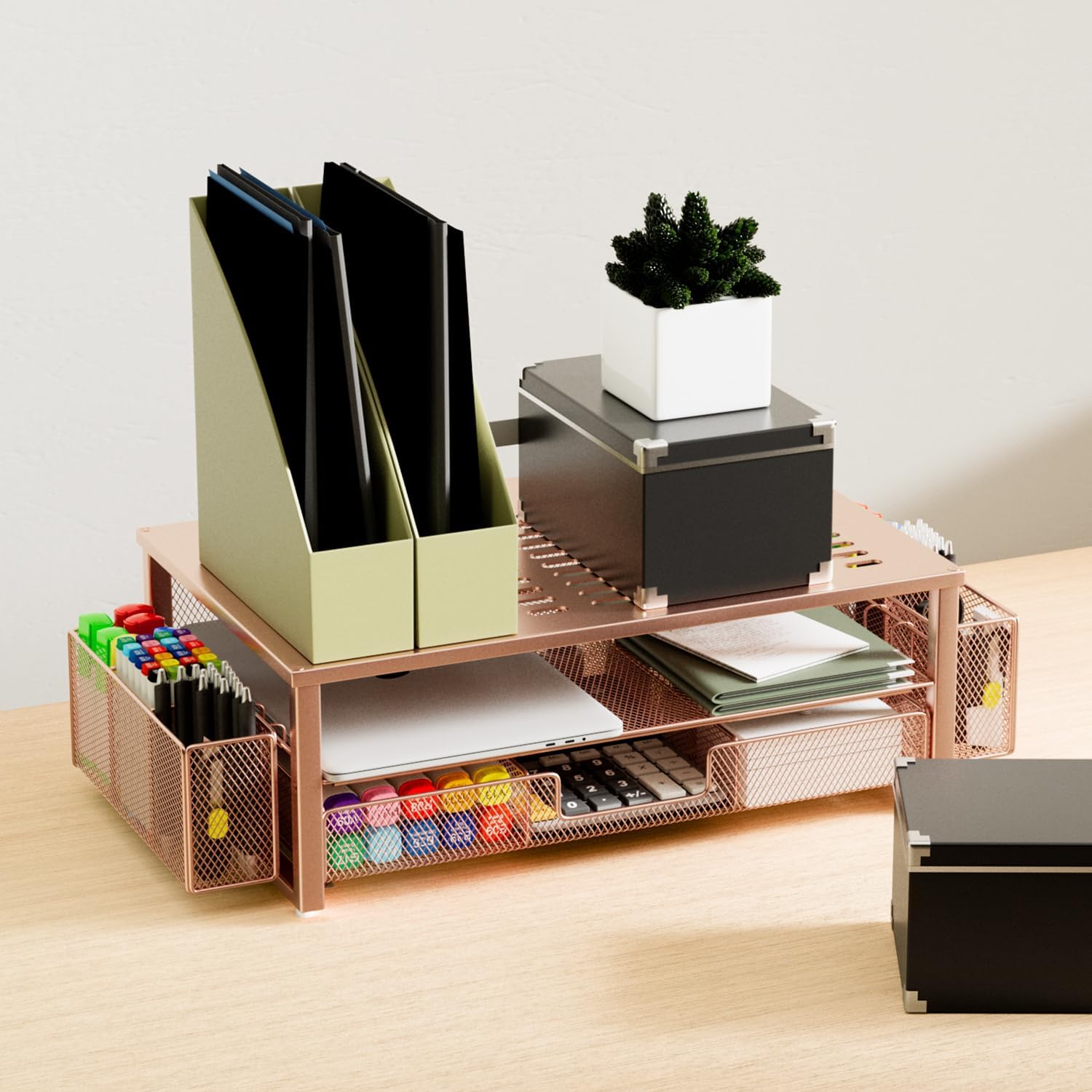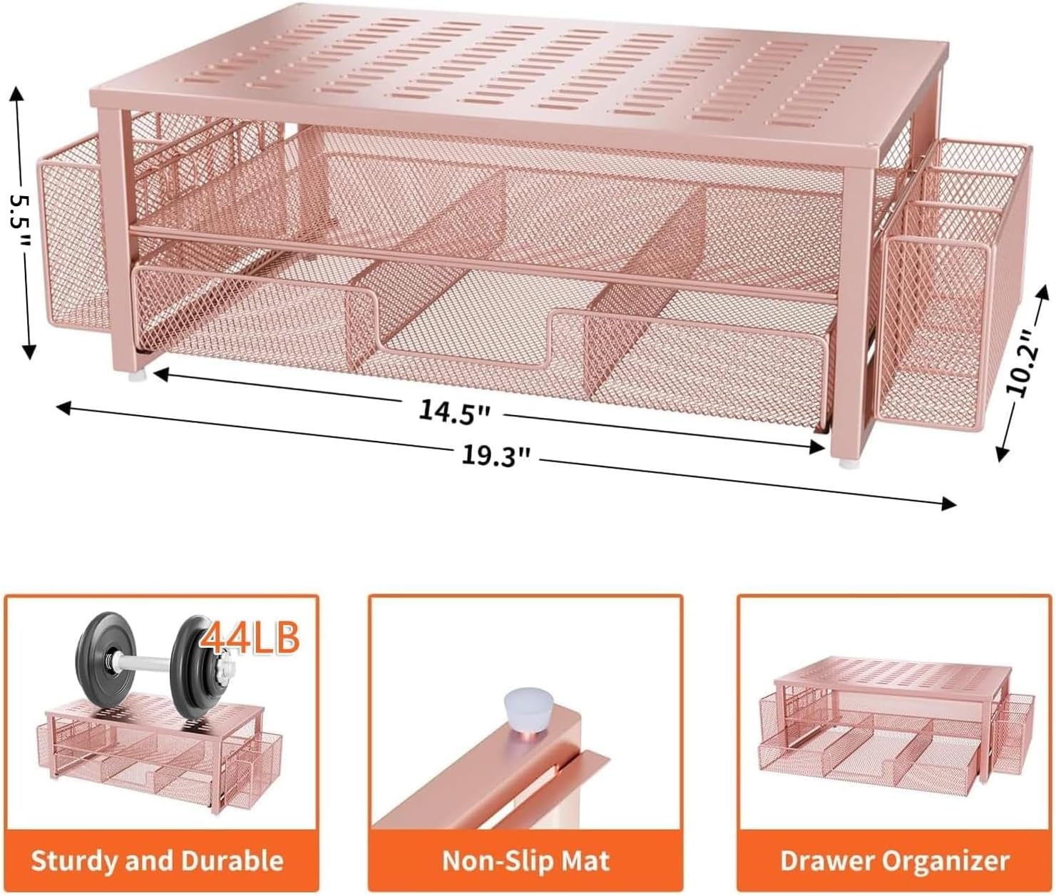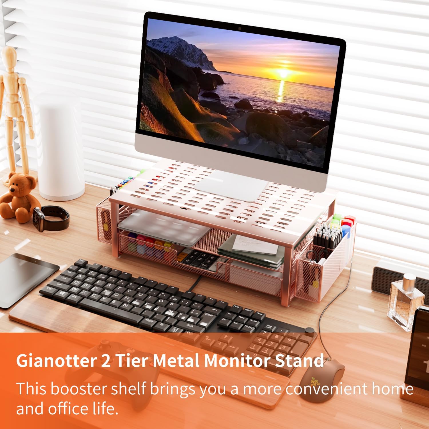 【Unique Desk Decor】: The monitor stand has a stylish rose gold coating, adding elegance and modernity to your office while being sturdy and practical. allowing you to work in a cozy and tidy environment with greater comfort and efficiency.