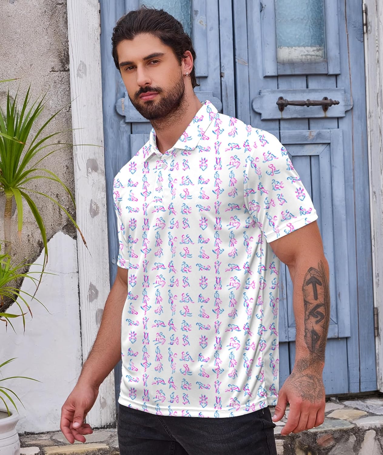 Golf Polo Shirts for Men Funny Print Short Sleeve Golf Shirts Performance Golf Polos