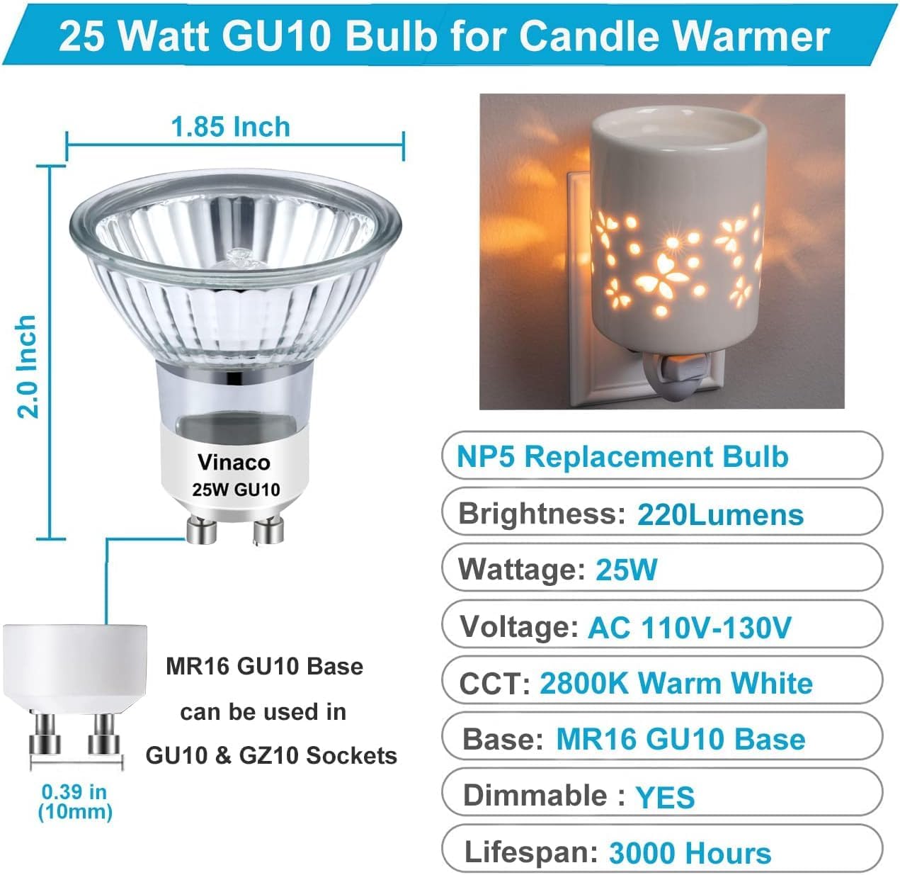 Vinaco Halogen GU10+C 120V 50W Long Lasting, Candle Warmer lamp Bulb 50 watt Warm White 2800K, Dimmable 50watt MR16 with G...