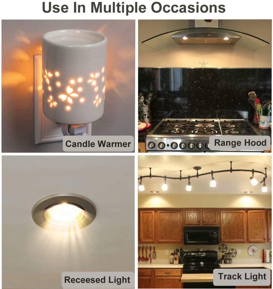 4,【Easy Installation and Wide Application】: With 36° beam angle for a more concentrated lighting, you can highlight the areas that you want to light up, our gu10 light bulbs perfect replacement for track light bulbs, range hood light bulbs, accent light bulbs and so on. Standard MR16 Shape with universal gu10 base, these halogen gu10 can be easily screw in all GU10 cans fixtures without replacing the whole fixture.
