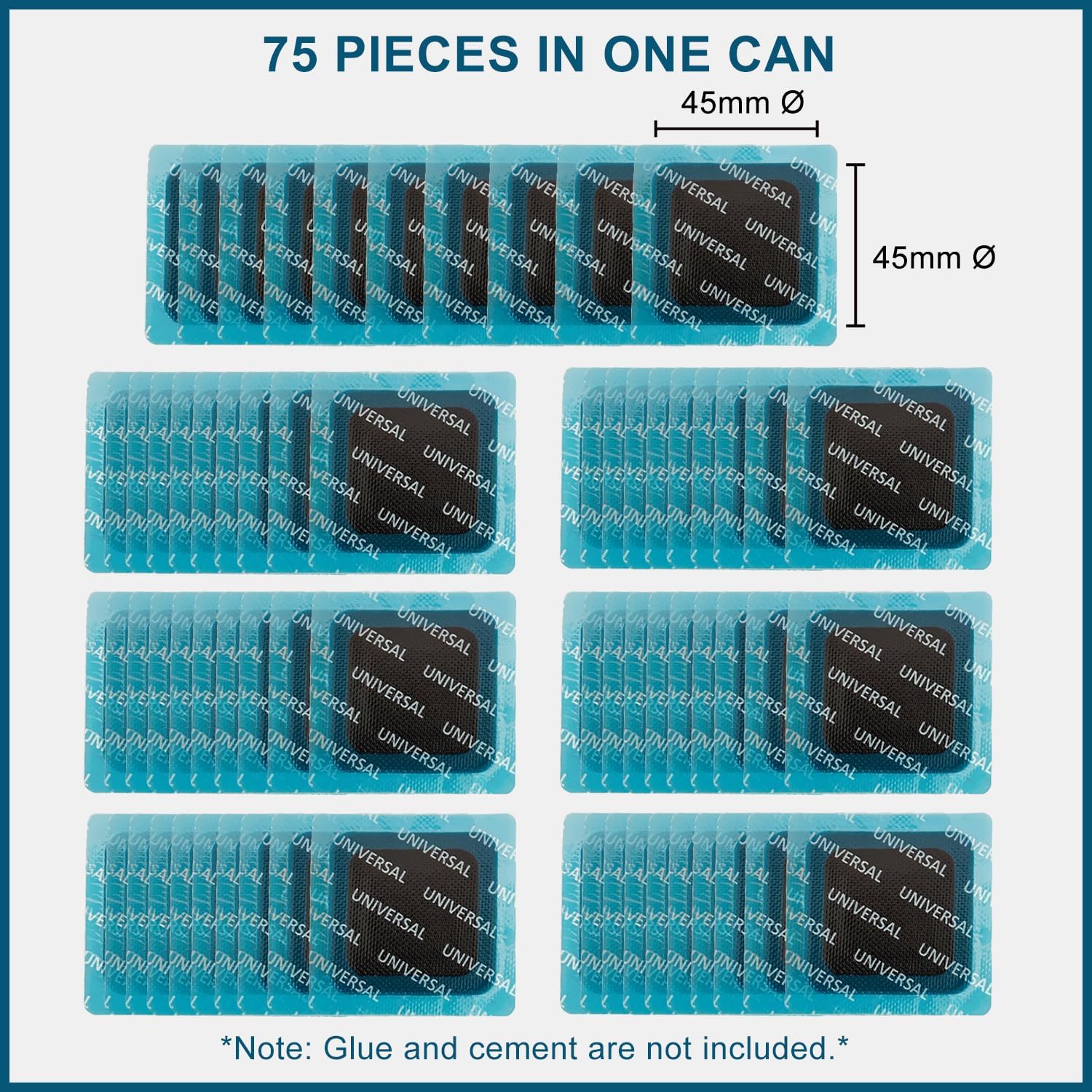 【Specifications】PAX diameter 1.77x1.77 inch / 45x45mm Square Tire Repair Patches. 75 pcs per can is sufficient to meet your various tire repairing needs, it is very economical and practical.