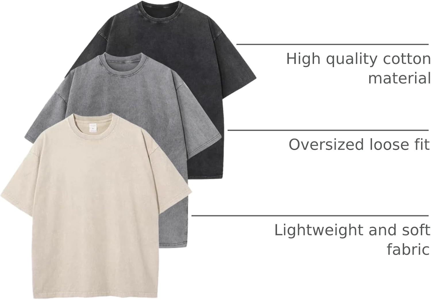 Arssm 3 Pack Men Oversized T Shirts Vintage Tee Loose Fit Short Sleeve Casual Streetwear Baggy Washed Unisex Tops