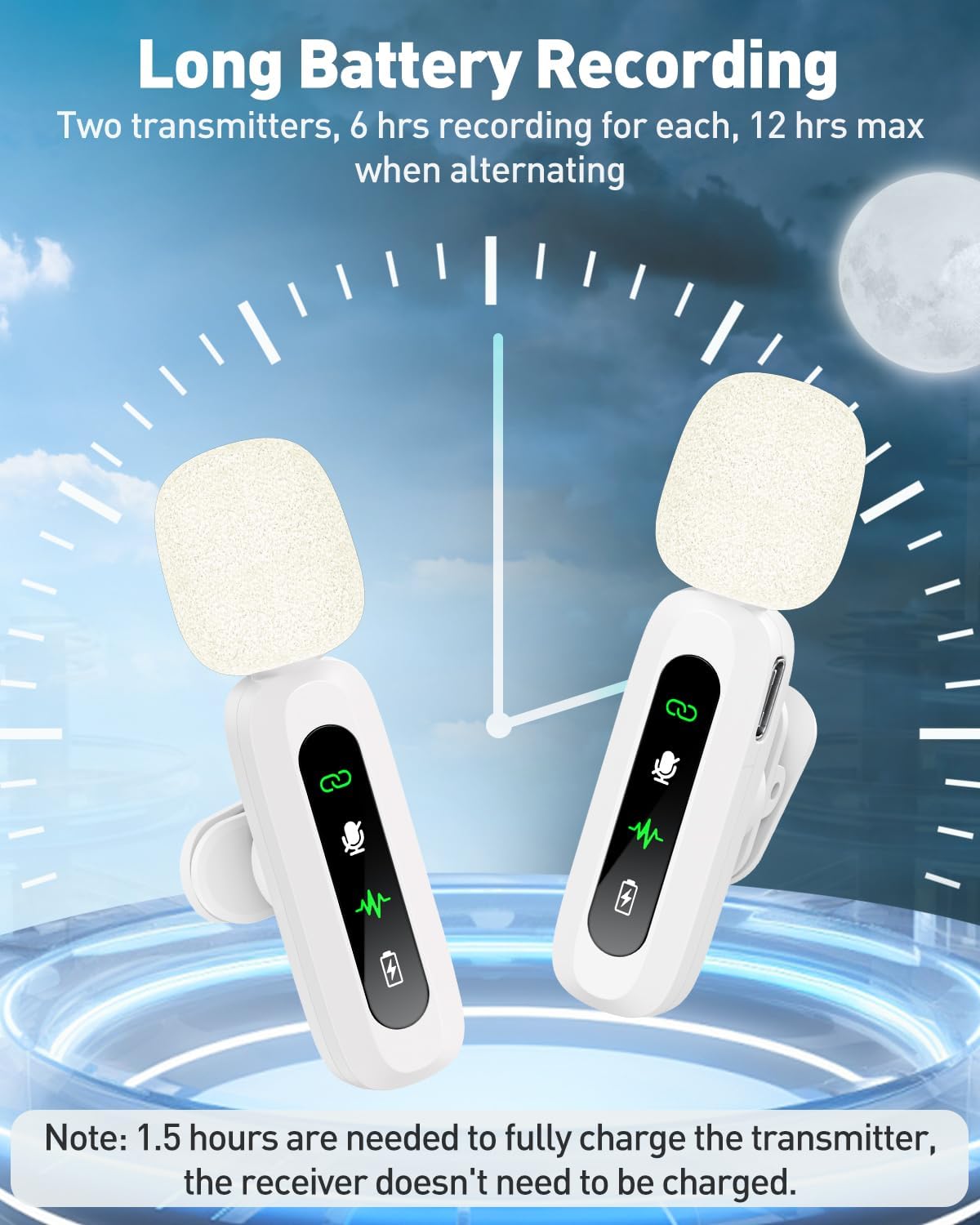 Long Battery Life Keep Recording: Enjoy extended recording sessions with the GoorDik microphone's long-lasting battery. Each transmitter has 1 60mAh battery and offers 6-12 hours of usage on a single charge. The included one-to-two charging cable enables simultaneous charging of two transmitters. There is a USB-C charging port on the receiver for charging your phone and ensuring uninterrupted recording. Worryfree during your content creation
