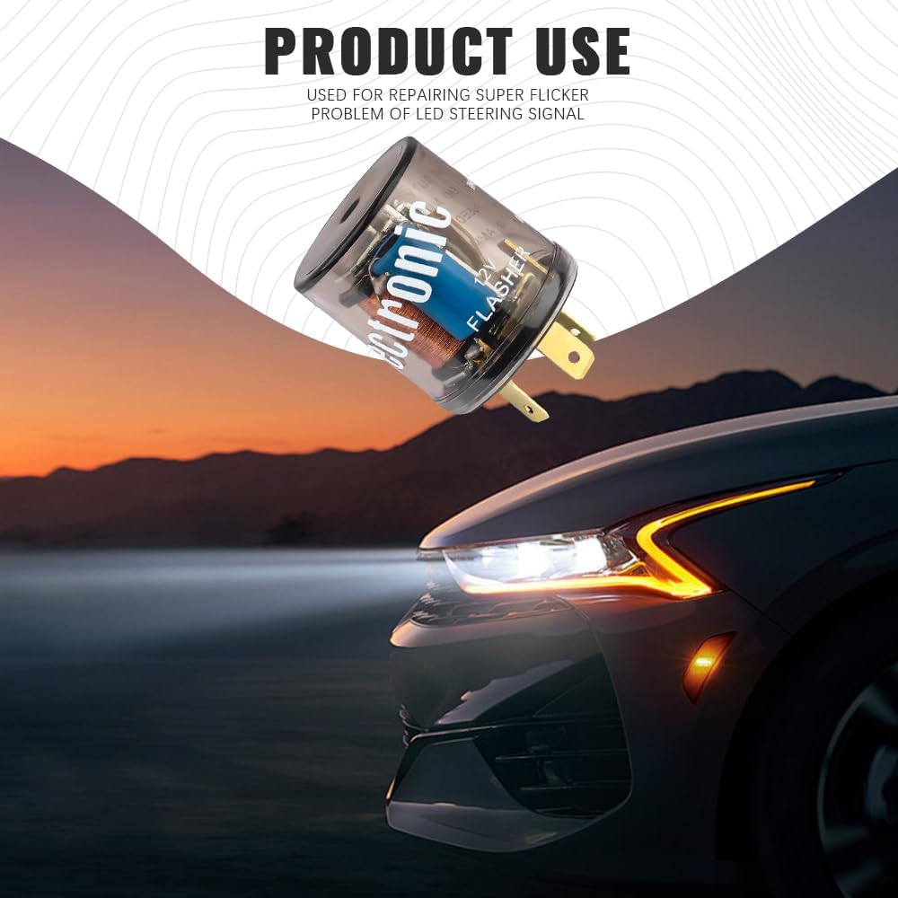 [Main function]: The flasher relay has stable performance, which can solve the problem of frequent flashing of automotive LED lights and weak lights, providing you with more clear and stable signal light brightness to improving driving safety