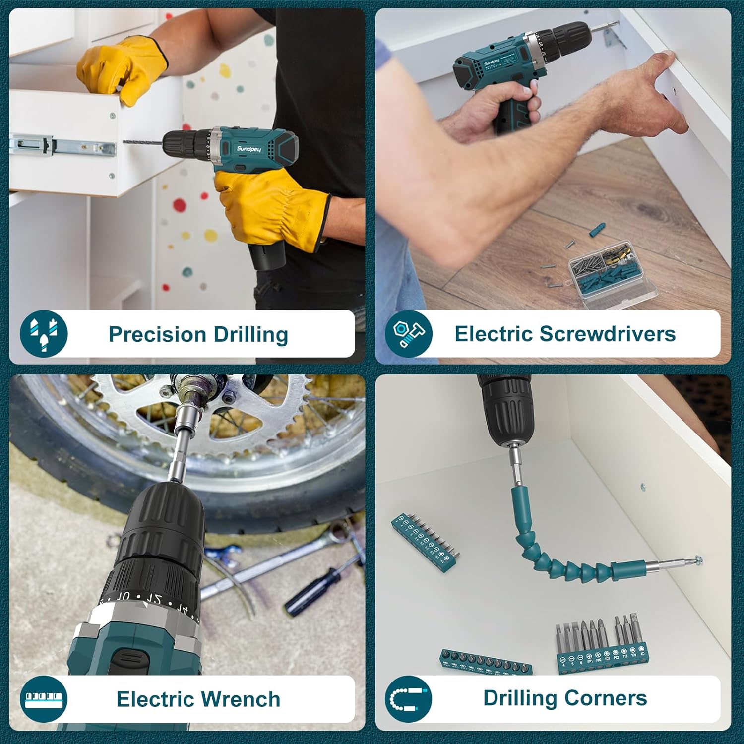 【Cordless Power Drill with LED Light】 This versatile drill is a must-have for any home, garden, apartment, or dorm room. It's good for driving screws and drilling holes in plastic, wood, ceramics, and glass. With an integrated LED light for optimal visibility, the drill offers two-speed settings: 0-350 RPM and 0-1350 RPM. The chuck can clamp down on bits up to 3/8 inch (10mm). If you're into DIY, you're gonna fall head over heels for this tool.