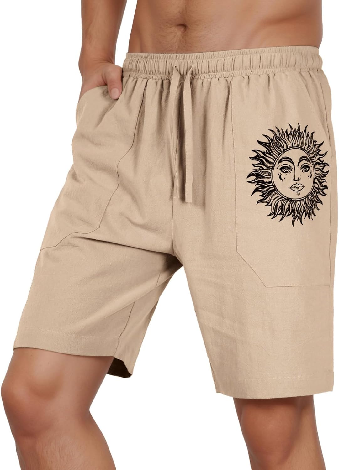 【High Quality Cotton Linen Blend】Using 70% Cotton + 30% Linen fabric, avoiding the roughness of pure linen fabric, our mens linen shorts not only have the lightness and breathability of linen, but also more soft and comfortable! Keeping you cool and relaxed for warm weather.