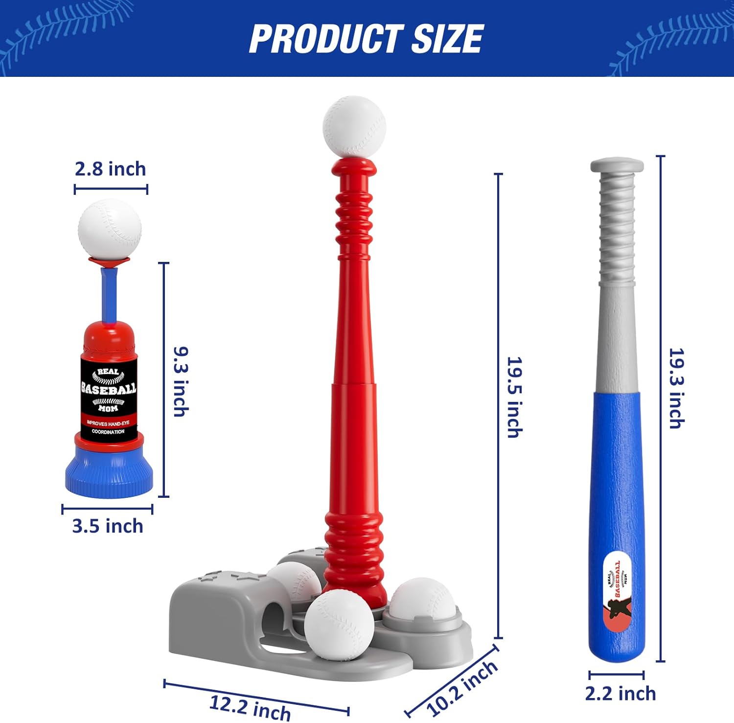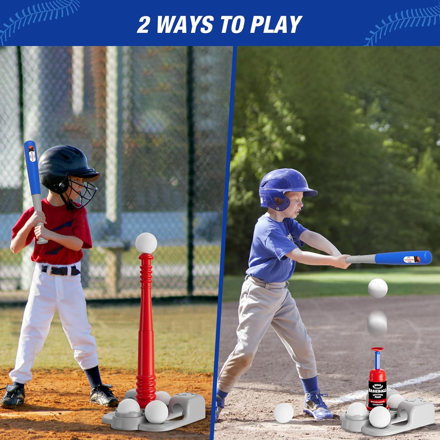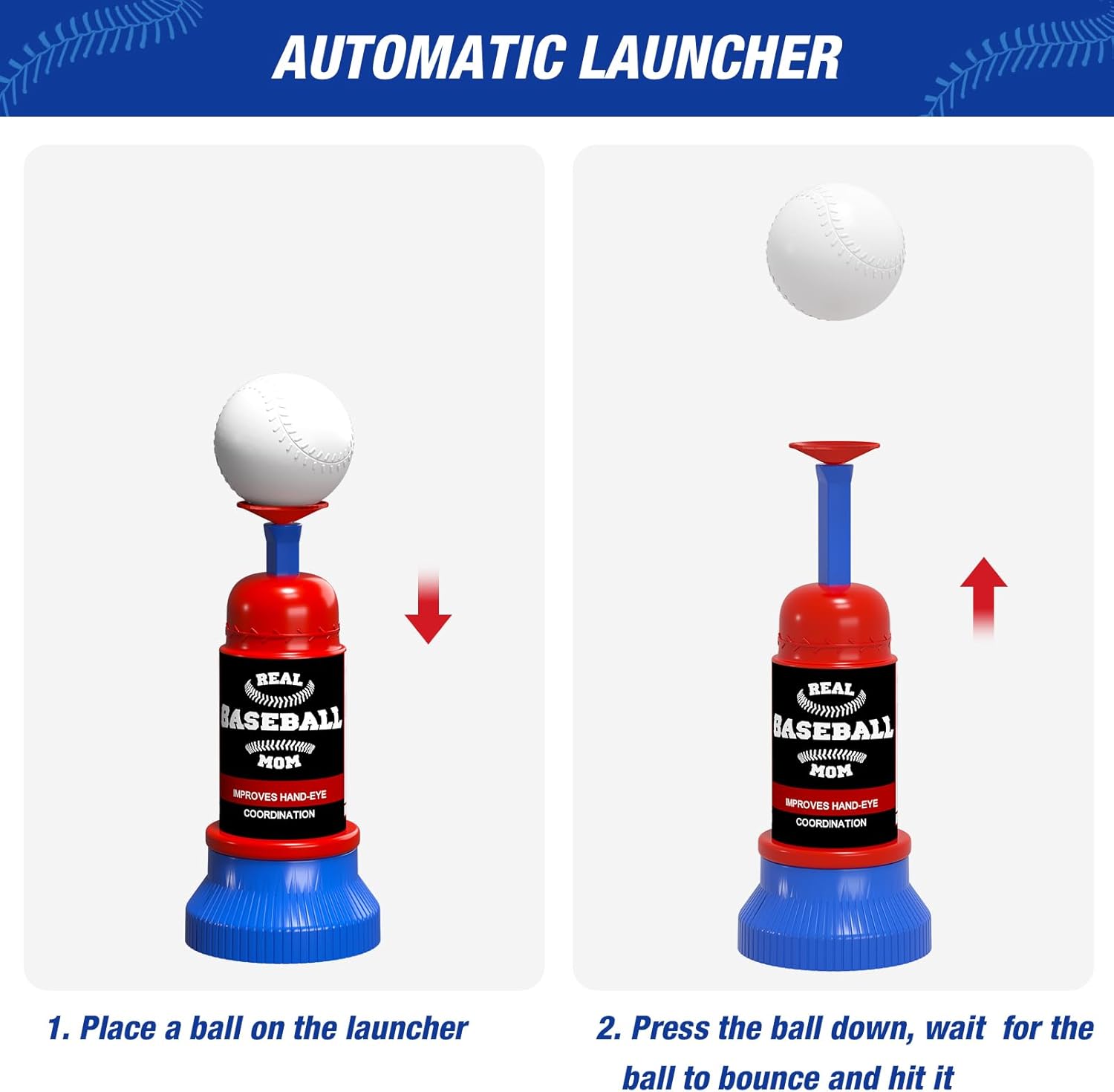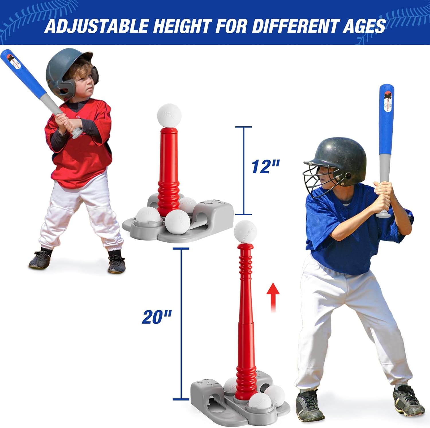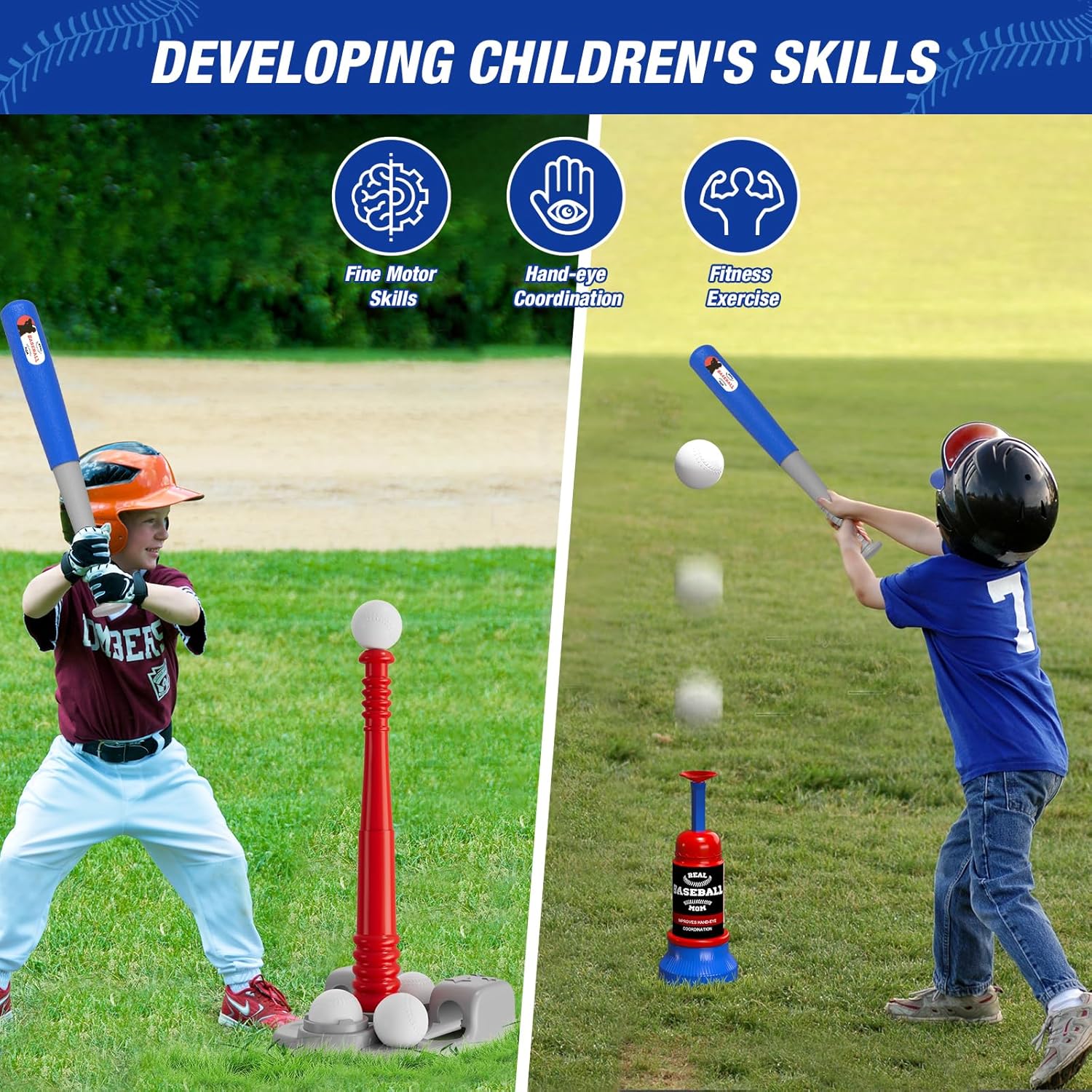2 WAYS TO PLAY - Enjoy real baseball experience! ①T ball stand: with retractable bat and 6 baseballs, adjustable height "T" adapts to a child's developing skills. ②Tee popper: hitting baseballs that bounce automatically. Toddler baseball will not only improve child's batting skills, but also enhance their fine motor skills, hand-eye coordination