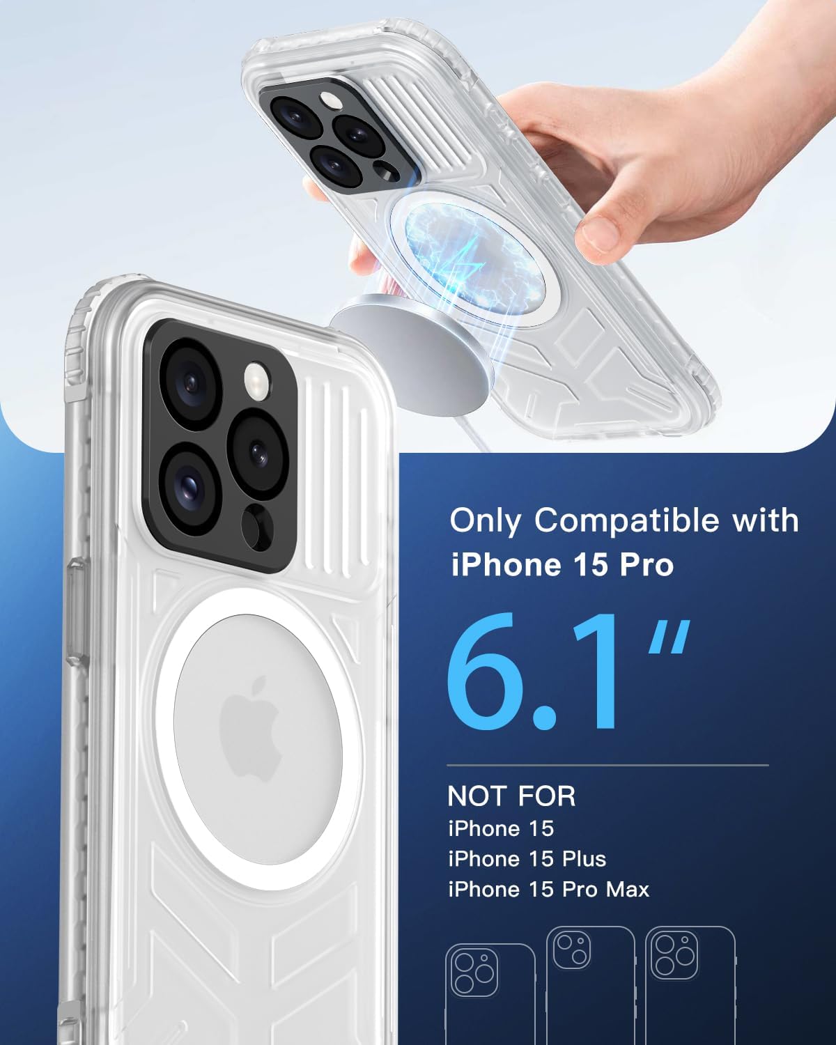 Double Strength Magnets: Haireca's N52 magnets in the iPhone 15 Pro case ensure a robust grip and seamless MagSafe charging