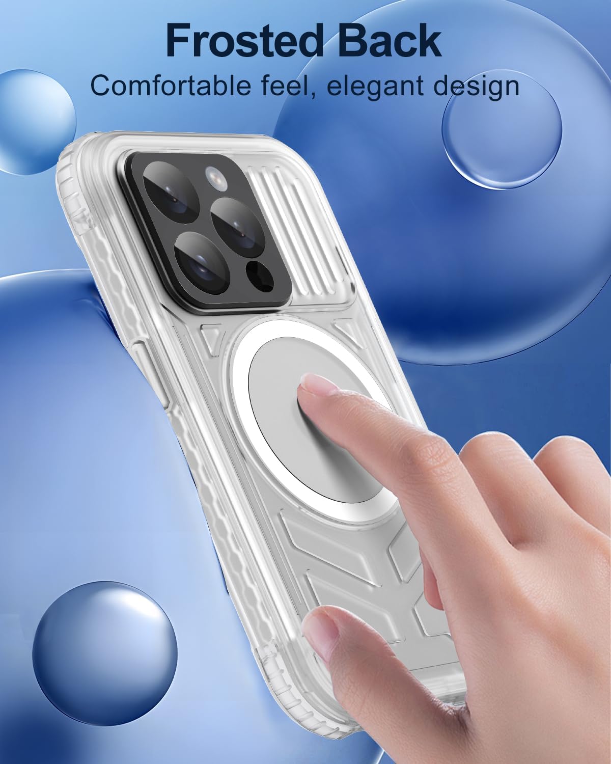 Frosted Grip & Style: Haireca's case for iPhone 15 Pro, crafted from premium German TPU and PC, offers a sleek, fingerprint-resistant frosted finish for a comfortable, secure hold