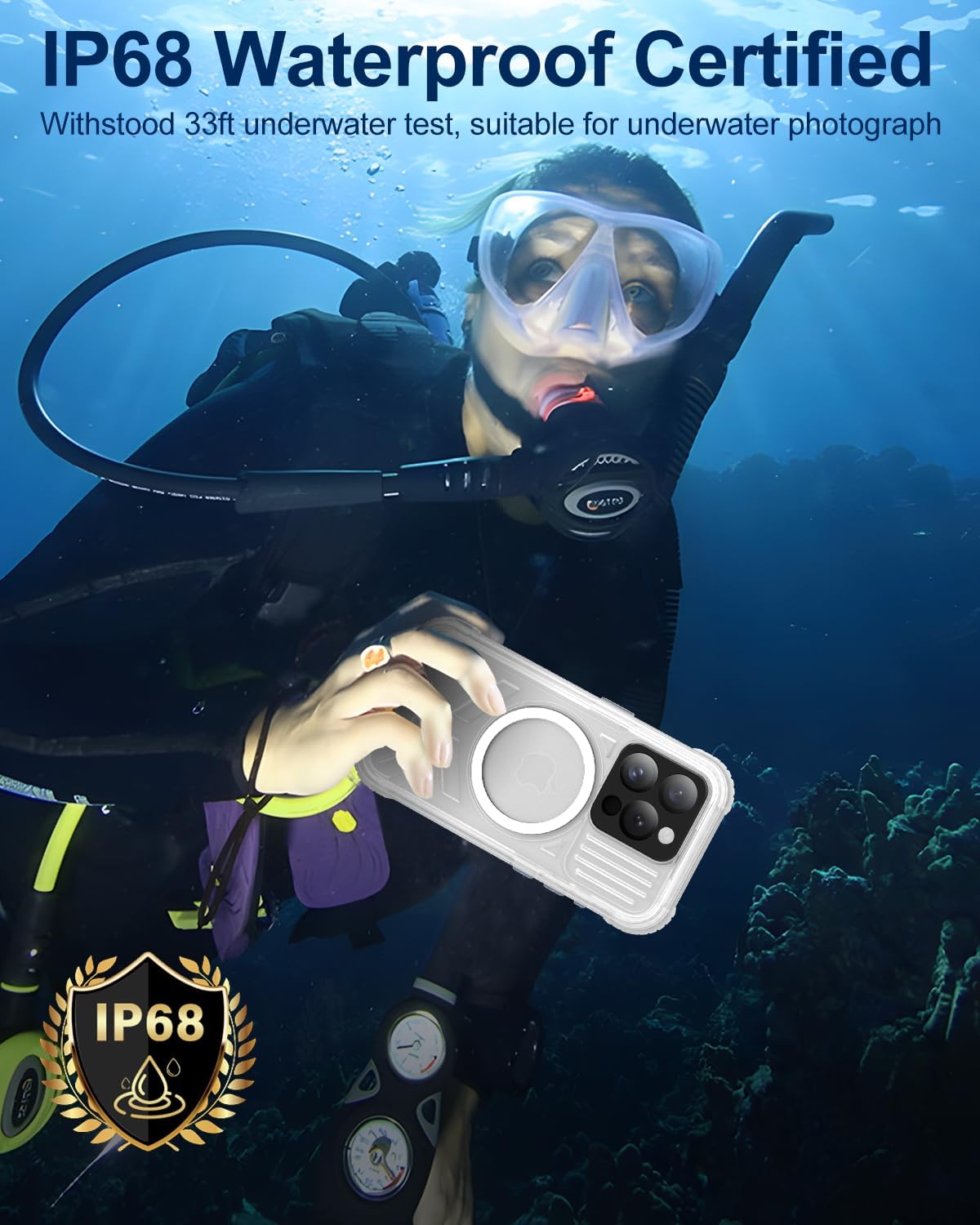 Waterproof iPhone 15 Pro Case: IP68 rated, 1-hour submersion at 33 ft, ideal for aquatic adventures, fully sealed and lightweight