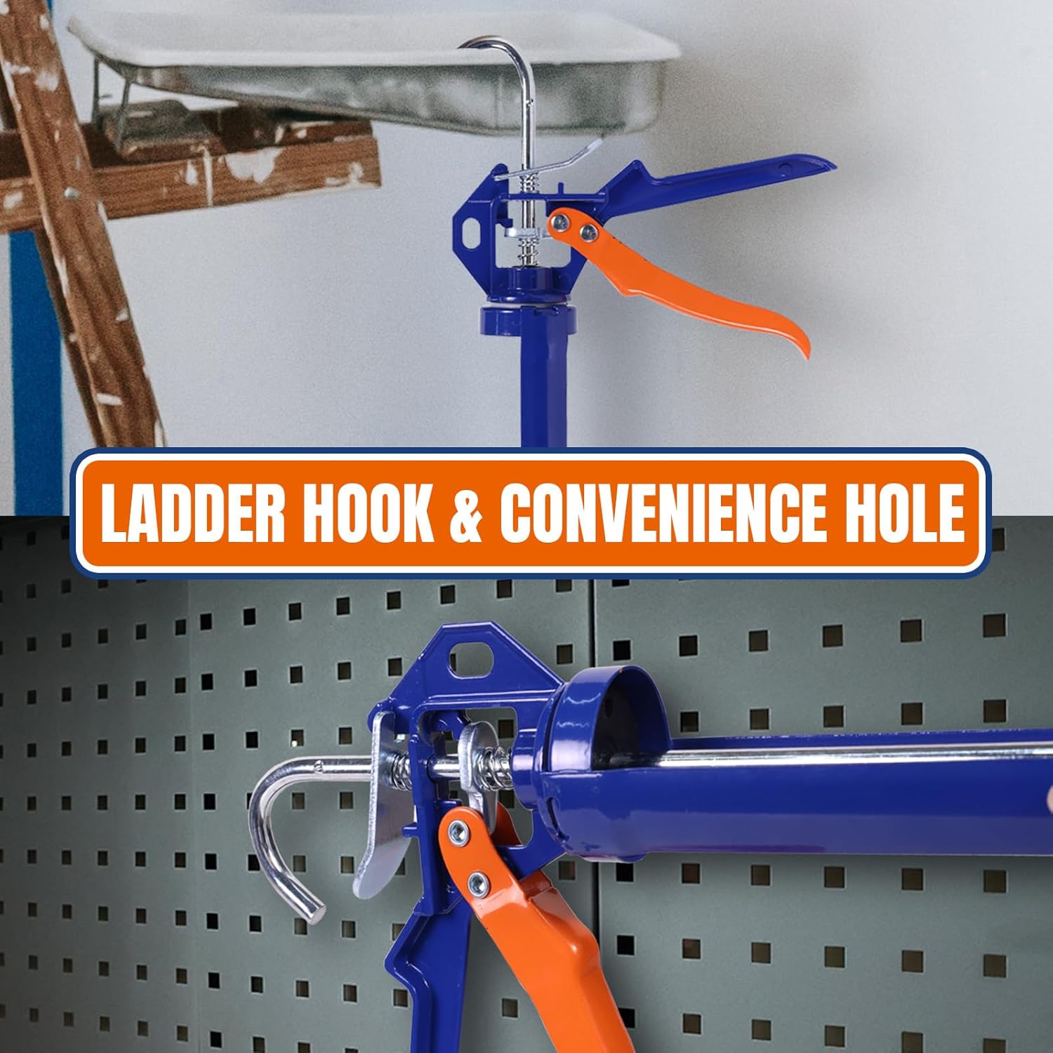 Easy to hang: The caulking gun has a ladder hook, making it easy to hang when not in use and convenient for storage
