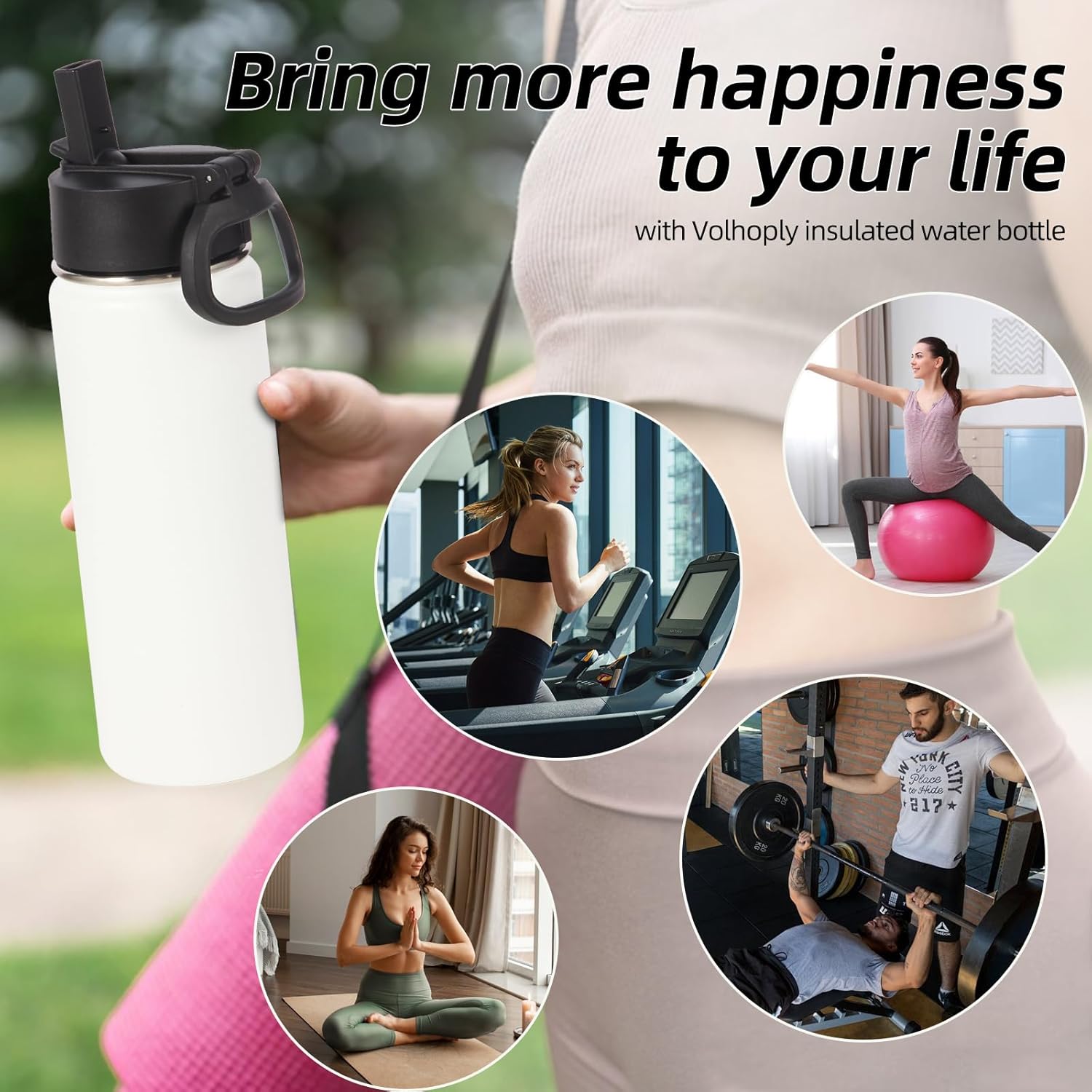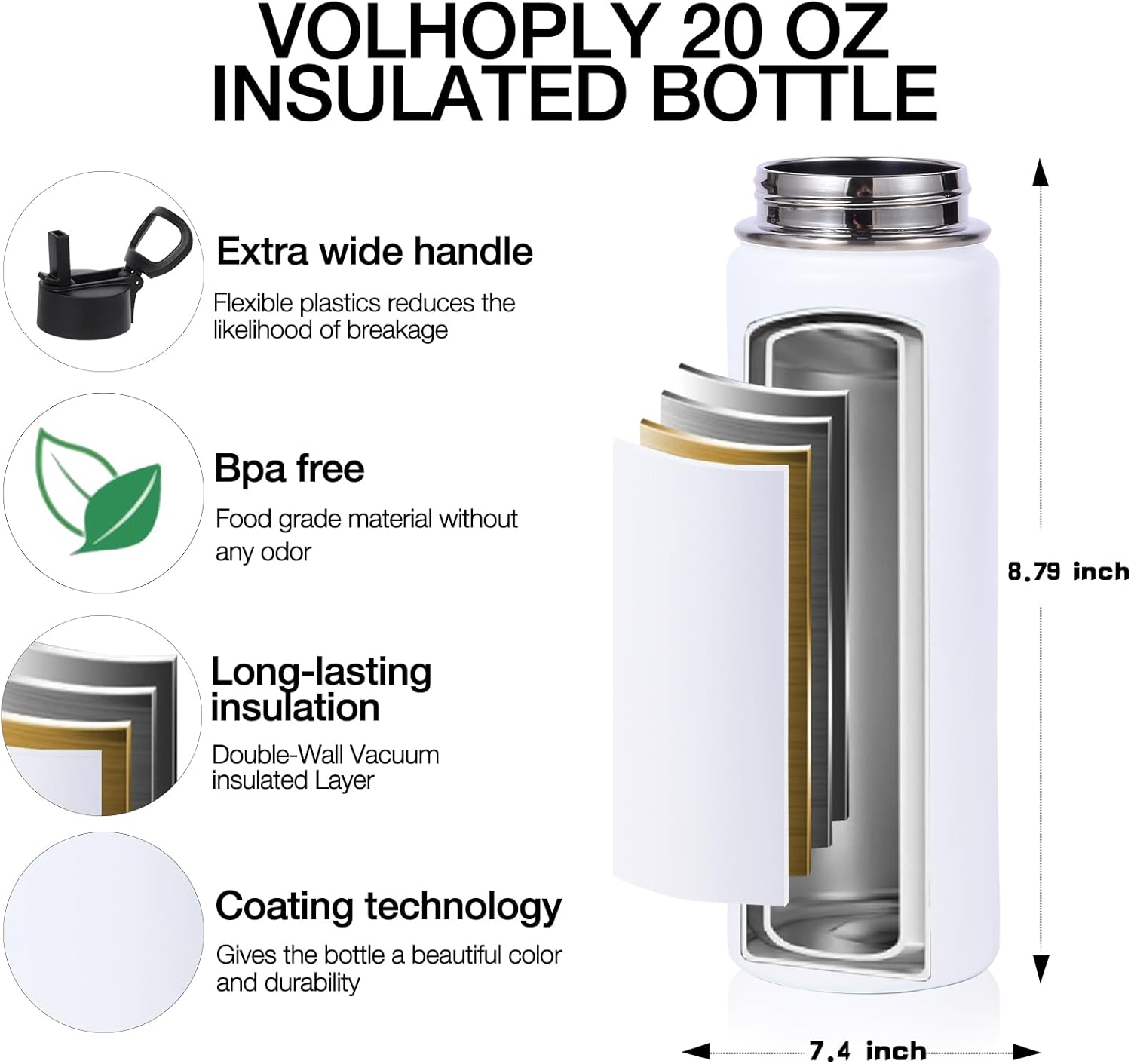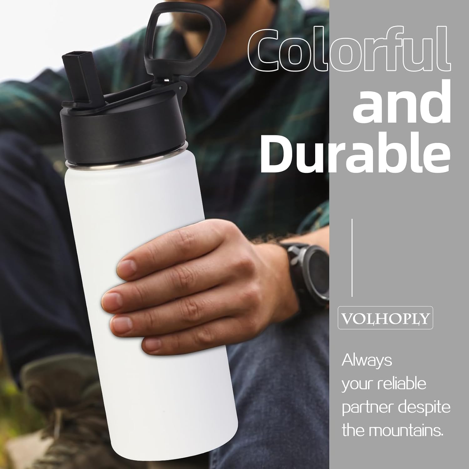 Volhoply 20oz Insulated Stainless Steel Water Bottle with Straw Lid Bulk 2 Pack,Kids Double Wall Vacuum Thermos with Handl...