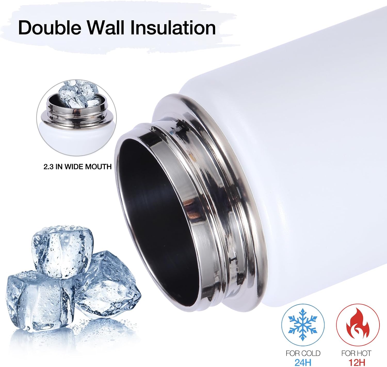 【Premium Material】Made of food-grade 18/8 stainless steel,this double-wall insulated water bottle keeps hot beverages hot for up to 12 hours and cold beverages cold for up to 24 hours,so you can enjoy hot or cold beverages on the go.