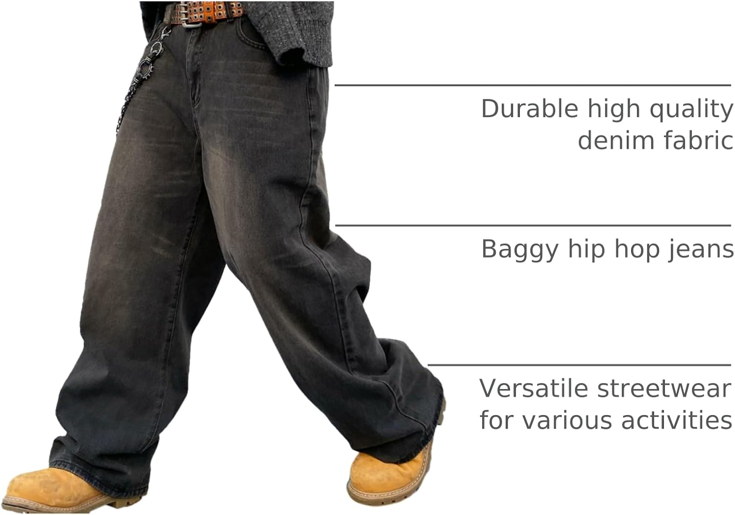 Stylish baggy fit: DFGIGT Men's Baggy Hip Hop Jeans feature a loose and relaxed fit, showcasing a trendy baggy style that is perfect for streetwear fashion.