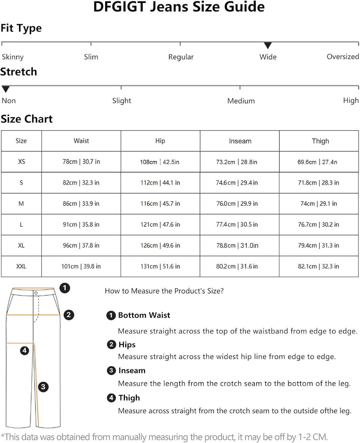 Wide leg skater design: These denim pants are designed with a wide leg skater style, offering a comfortable and fashionable fit with a straight and relaxed silhouette.