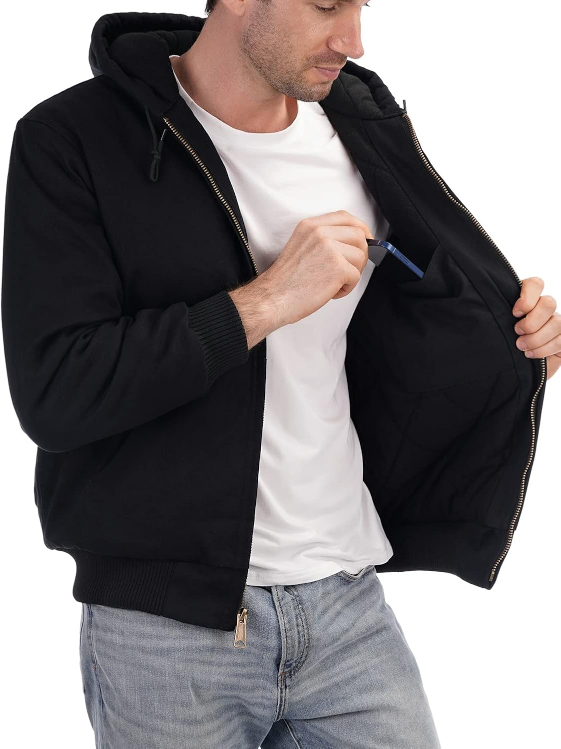 Quilted Flannel Lining: This men's work jacket features a warm quilted flannel lining that retains heat, providing an extra layer of comfort during the cold winter months