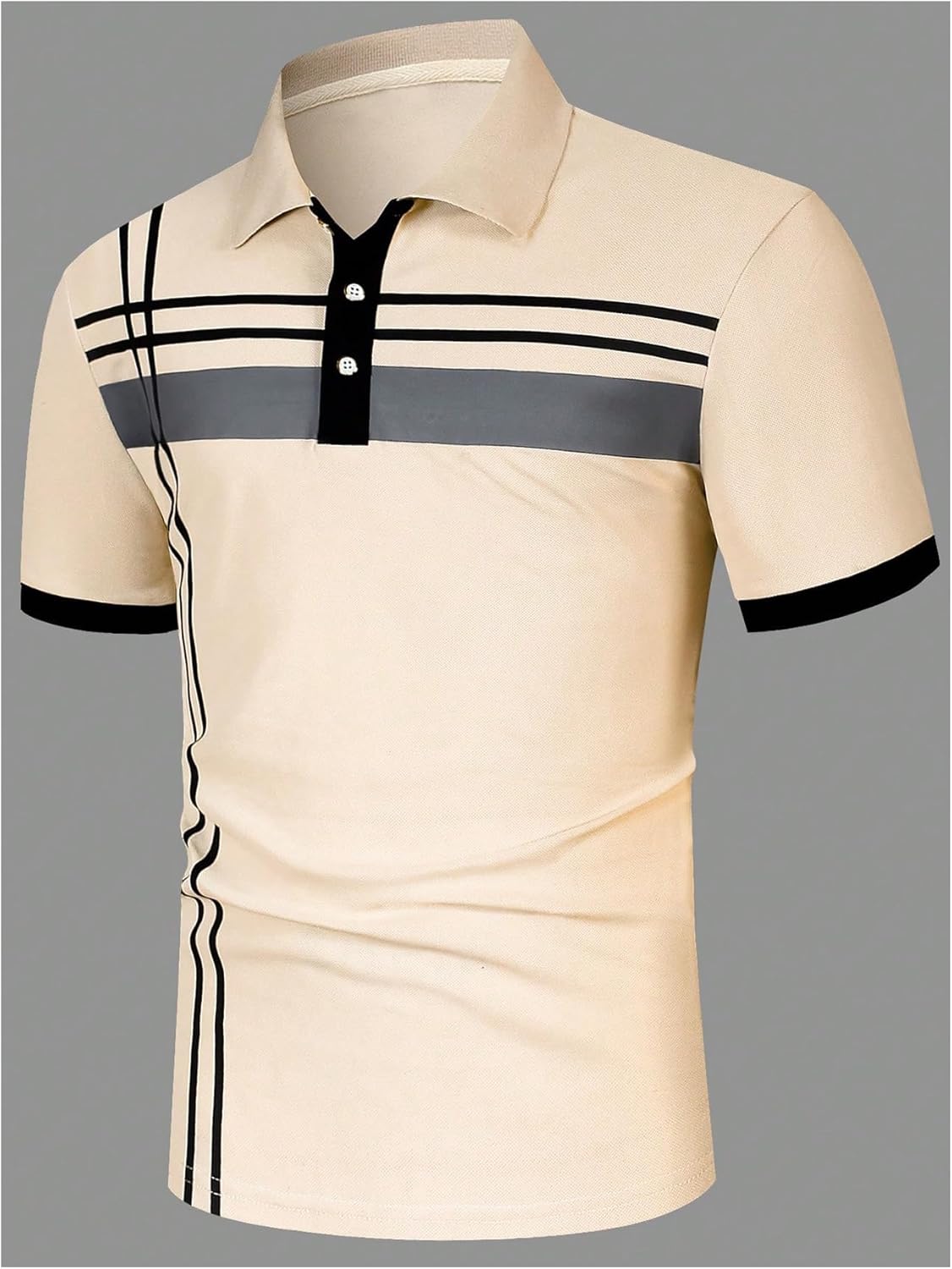 Feature: Striped graphic, button down, short sleeve, slim fit, golf polos for men, fashionable and old money