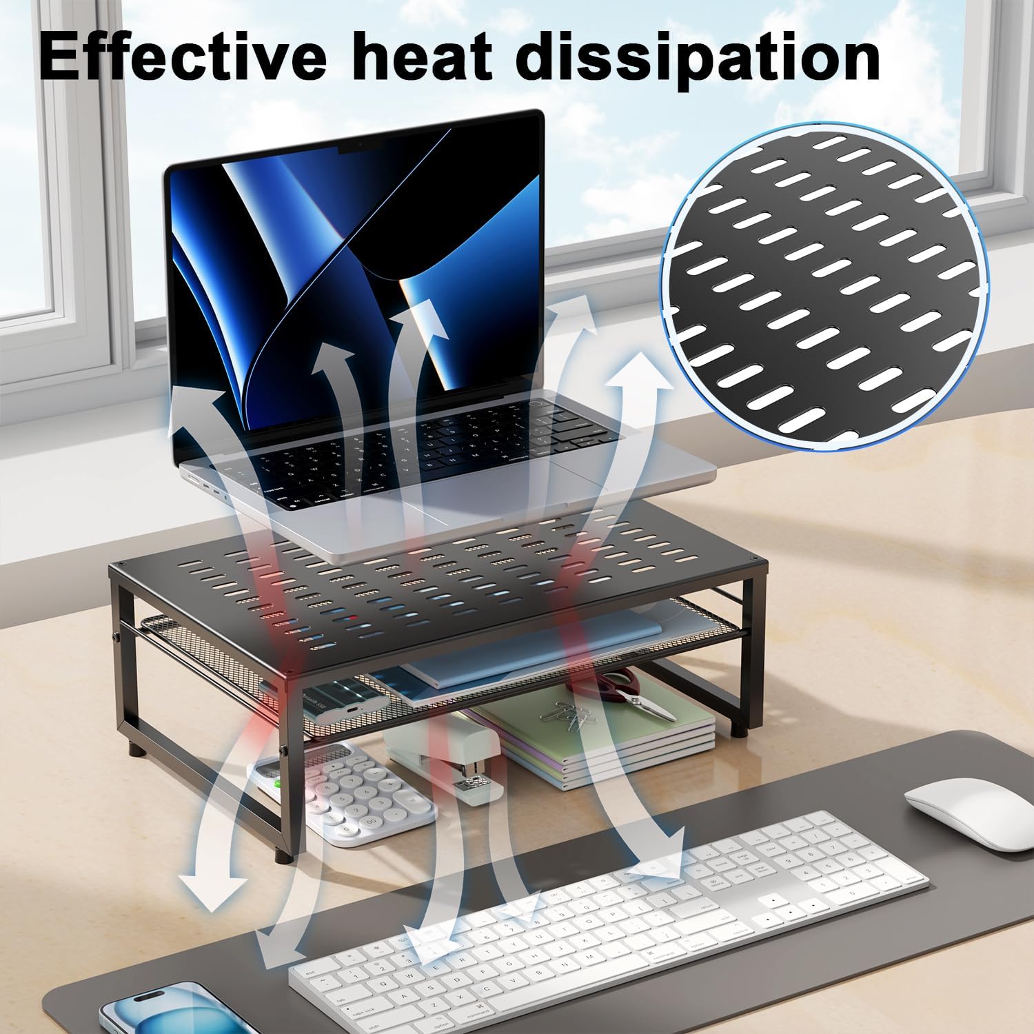 【Practical and Stylish】 The laptop stand has a simple yet sophisticated dual-layer design, providing ample space to store various office supplies, keeping your desk tidy. This allows you to work more efficiently in a comfortable and organized environment.