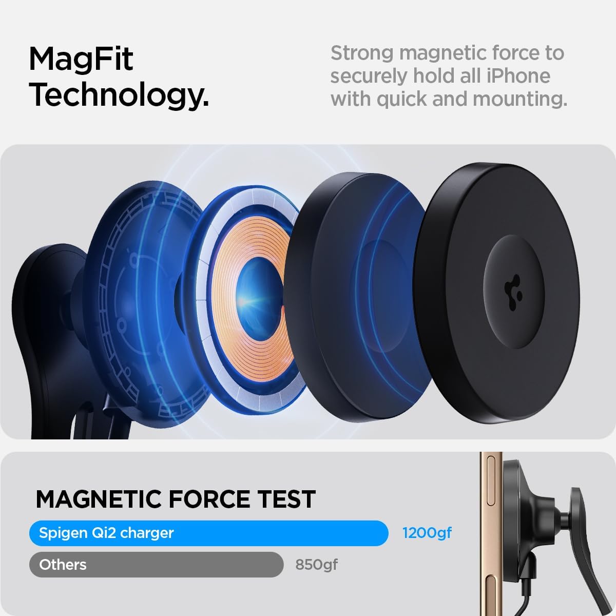 Spigen TapLock MagFit Qi2 Certified Wireless Magsafe Car Mount Charger (Screen Mount) Designed for New Tesla Model Y 2025 ...