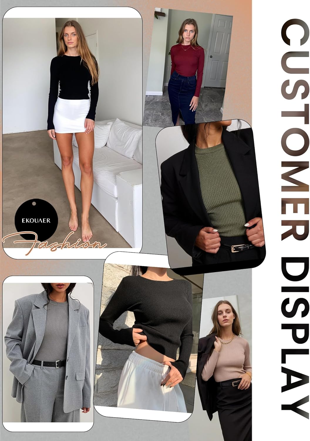 【Multi-occasions】The womens ribbed crewneck tops is perfect for all occasion, it is suitable for casual styles, daily outfits, home wear, shopping, dates, lounging, vacations, holidays, halloween, thanksgiving, christmas parties, etc. This stretchy slim knit tops is versatile and can be styled in various ways, adapting to different temperatures and seasons, so you can wear it in spring, fall and winter.