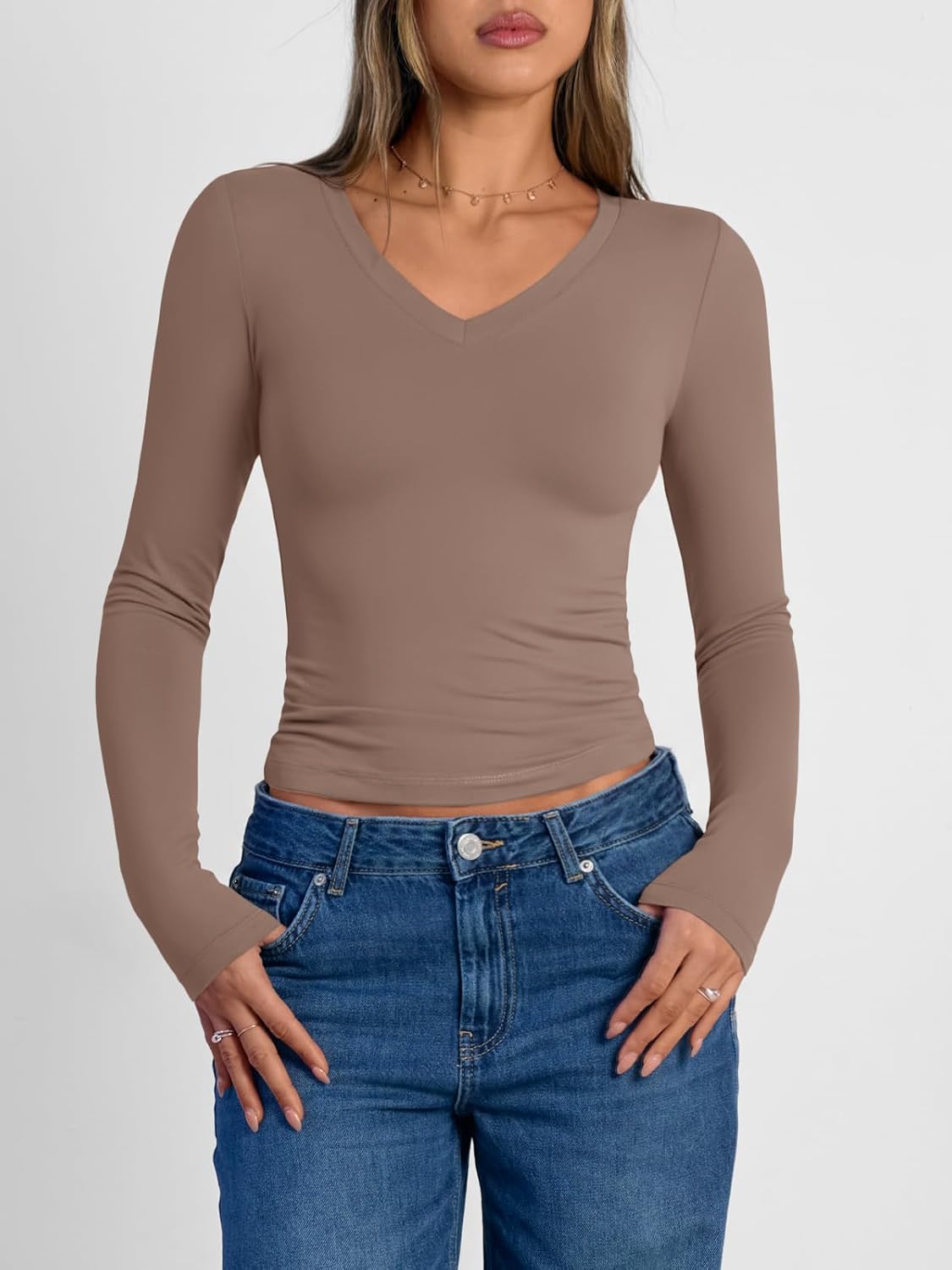 Design: high-stretch fitted style, v neck, long sleeve shirts, tight underscrubs layer, you can wear it regularly or fold it up like a crop top, cute tops, slim fit, casual shirts, y2k style fashion