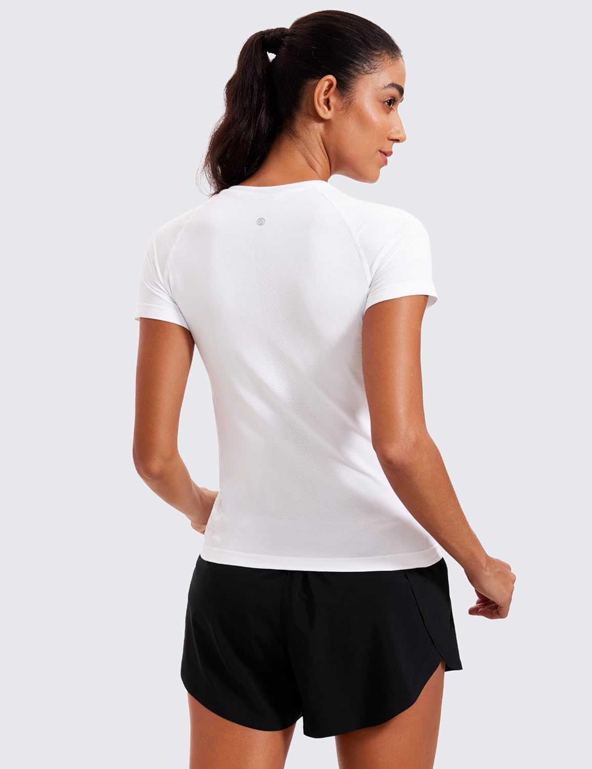 CRZ YOGA Seamless Workout Tops for Women Short Sleeve Athletic Tees Breathable Gym Running Yoga Shirts