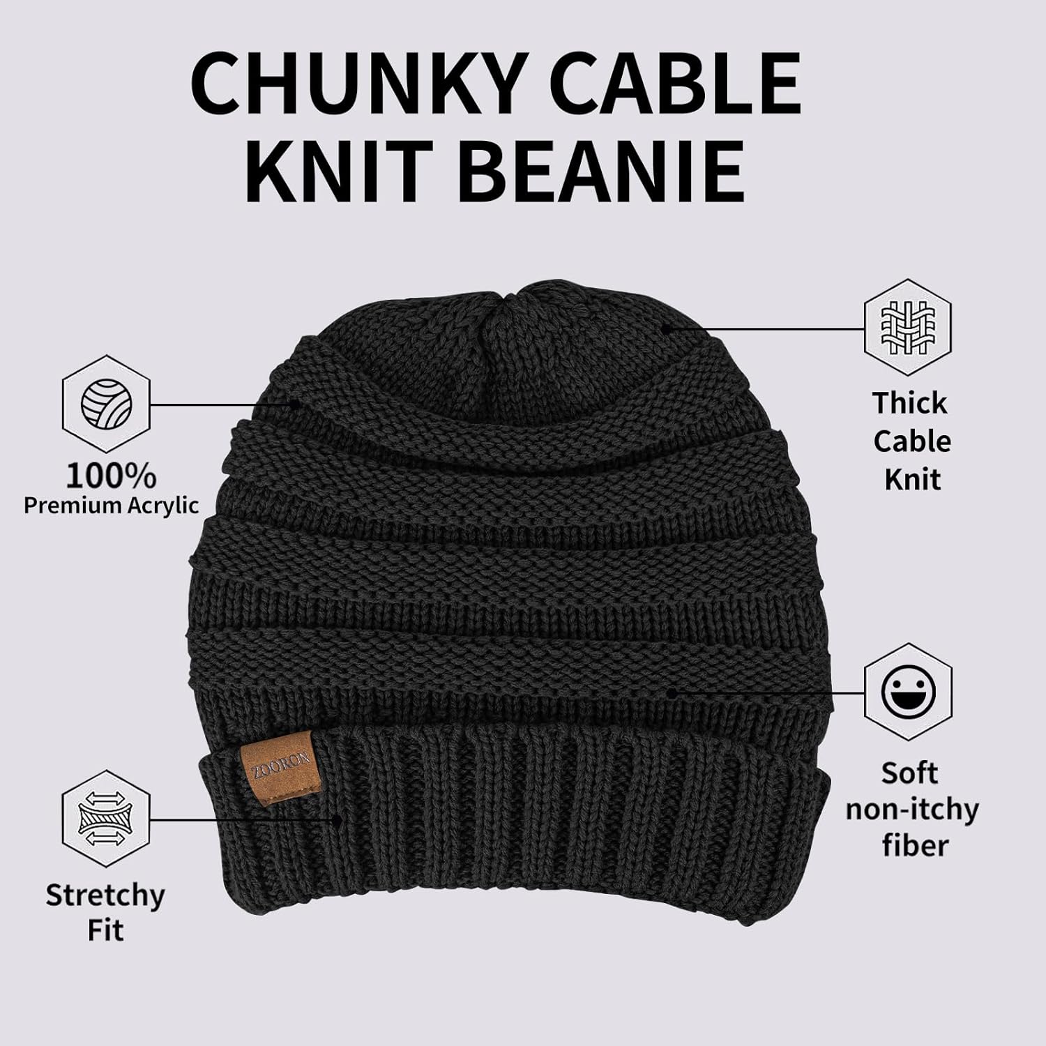 ZOORON Womens Winter Hat Slouchy Beanies for Women Cable Knit Winter Beanie Hats for Women Thick Cold Weather - Beanies Women