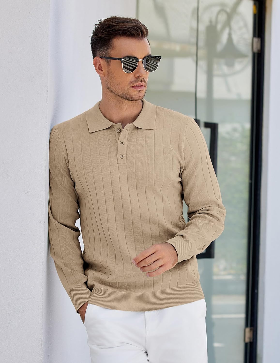 SLIM FIT: Mens knit polo shirt features a quarter-button classic POLO collar design with 3 buttons, high elastic cuffs and hem, making you comfortable and stylish for everyday wear.