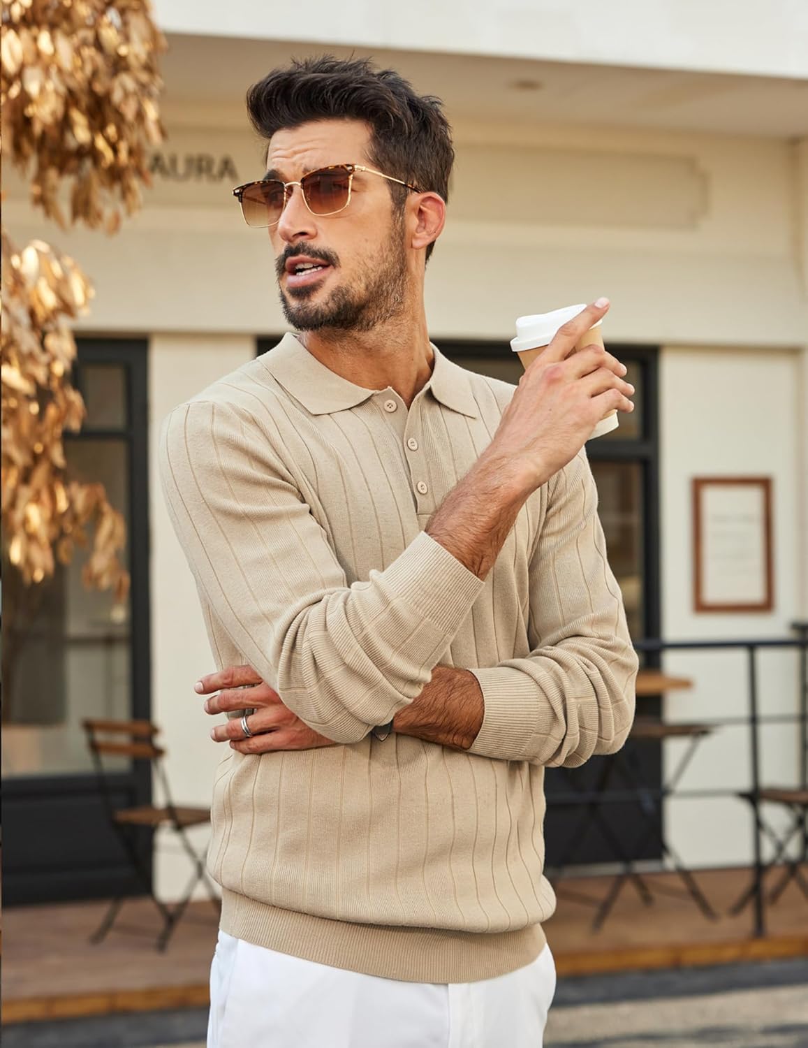 STRETCH MATERIAL: Mens polo sweater made of knitted wide pit fabric with soft, lightweight and not easy to pilling, offer enough resilience, and provide a comfortable fit and flexibility when wearing. Suitable for spring, fall and winter