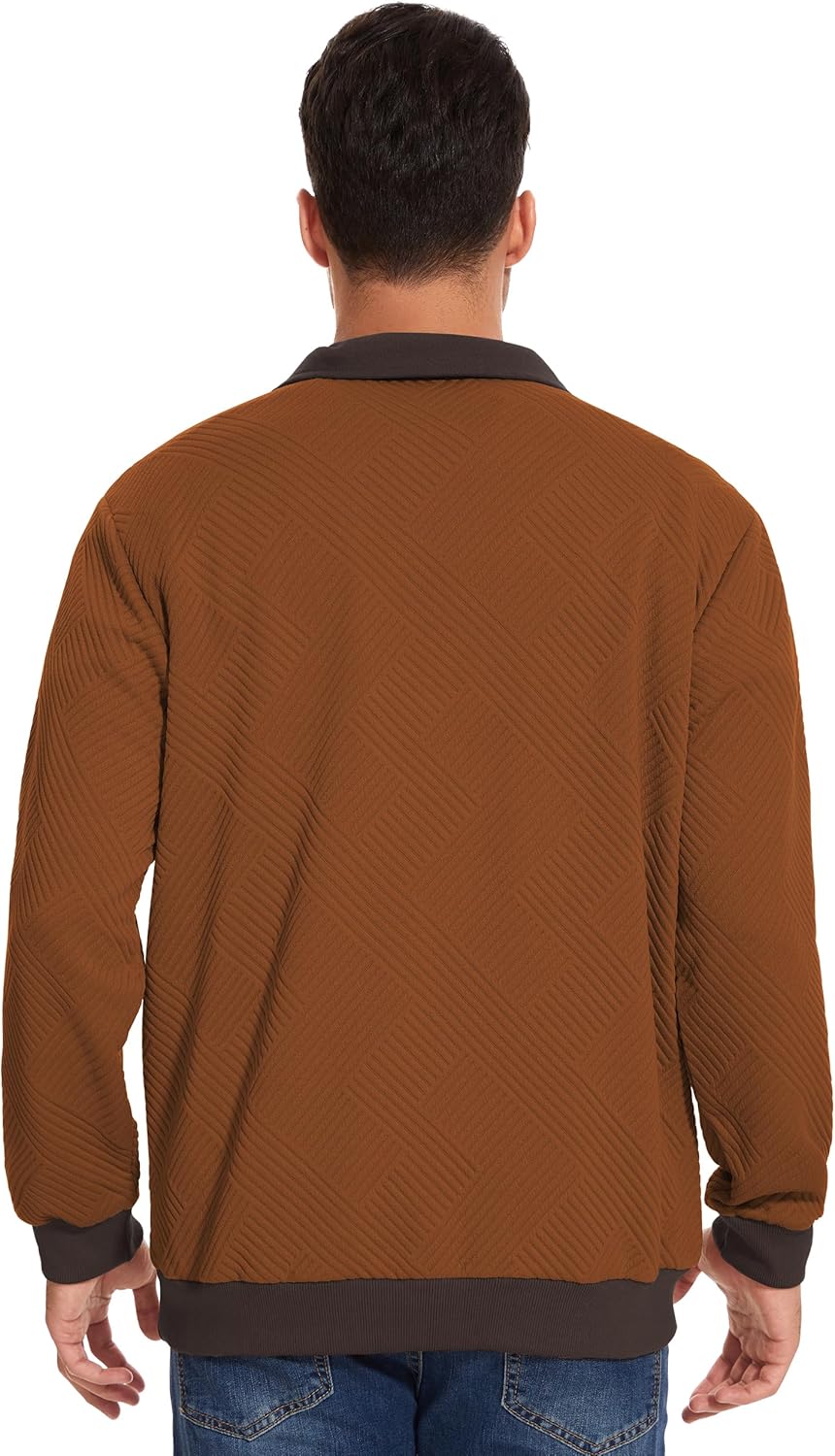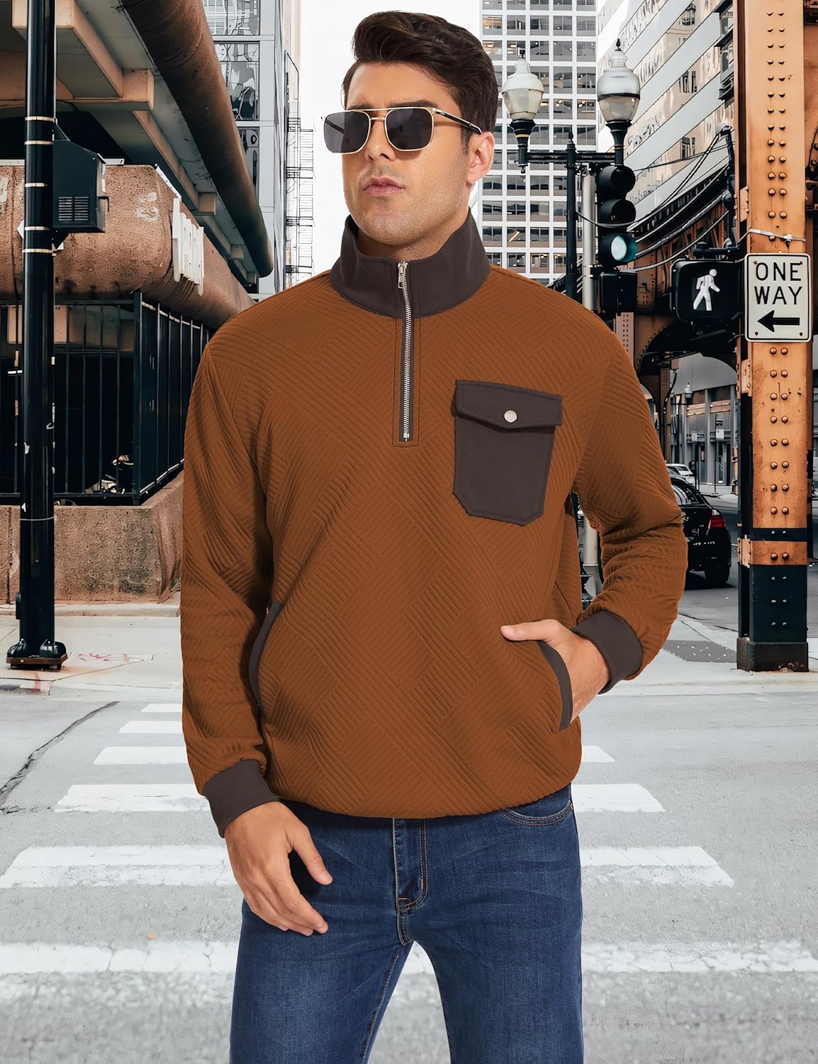 TURAND Mens Quarter Zip Pullover Casual Geometric Texture Knit Sweatshirt Long Sleeve Mock Neck Sweater Polo with Pocket