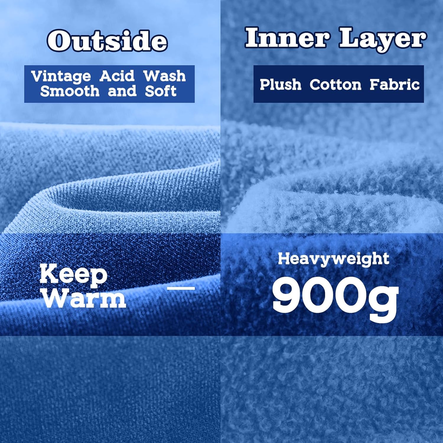 FAIABLE Mens Hoodies Pullover Oversized Hoodie Wash Plush Cotton Hooded Sweatshirt Vintage Heavyweight Hoodie Men Streetwear