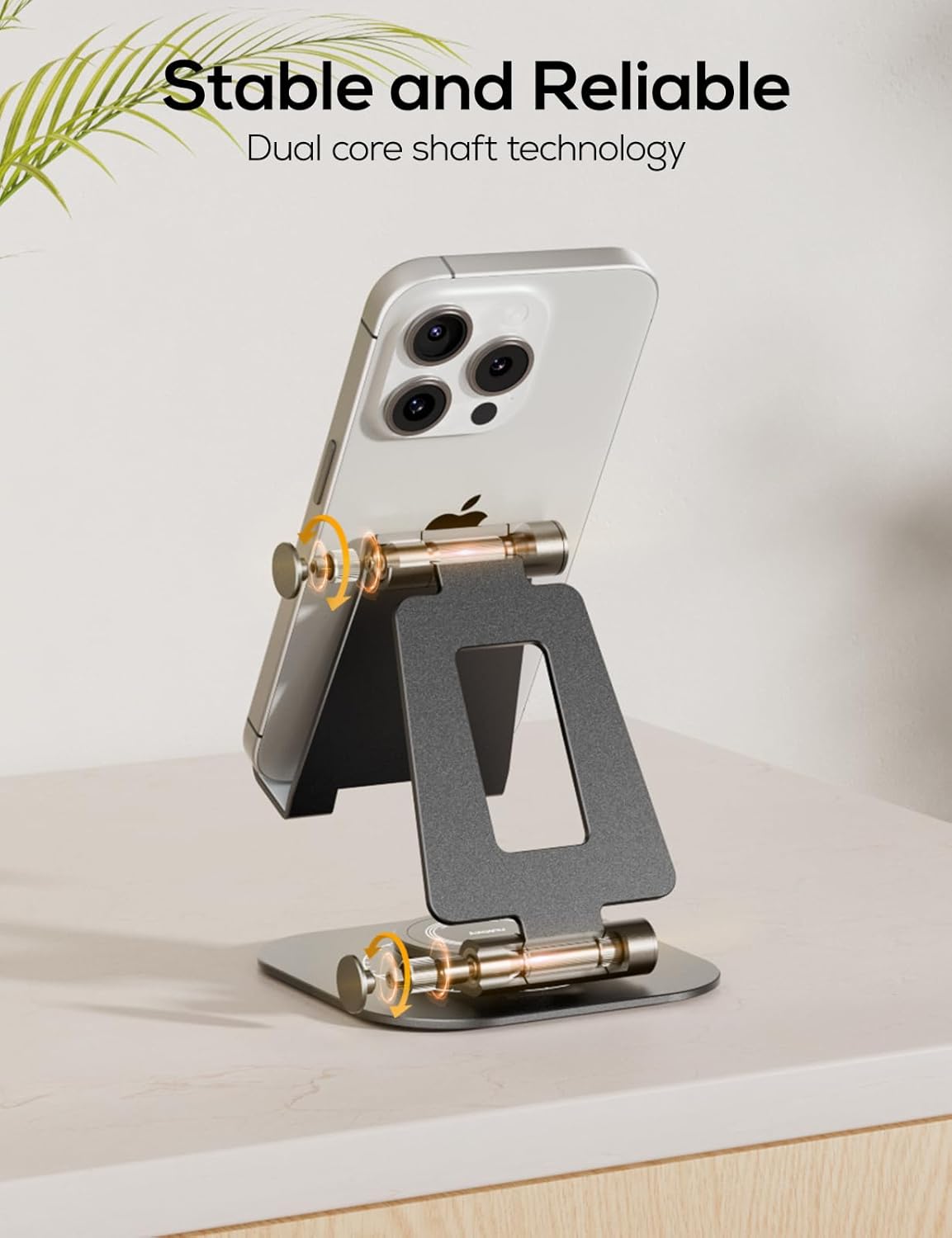 Find Your Perfect Viewing Angle: With adjustable angles, Nulaxy phone stand for desk ensures optimal comfort for every user. Whether you prefer a vertical or horizontal orientation, find the perfect angle for browsing, reading, or gaming, and enjoy a strain-free experience.