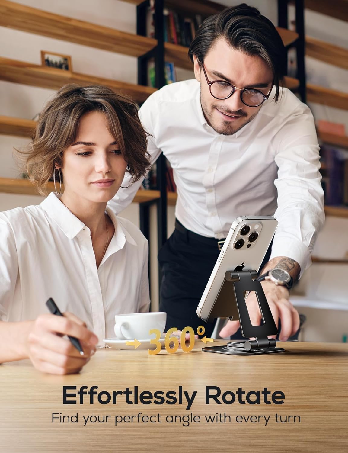 360° Rotatable: This phone stand offers a full 360° rotation, allowing you to adjust the viewing angle to your preference effortlessly. Liberates your hands comfort whether you're watching videos, video calling, or sharing your screen.