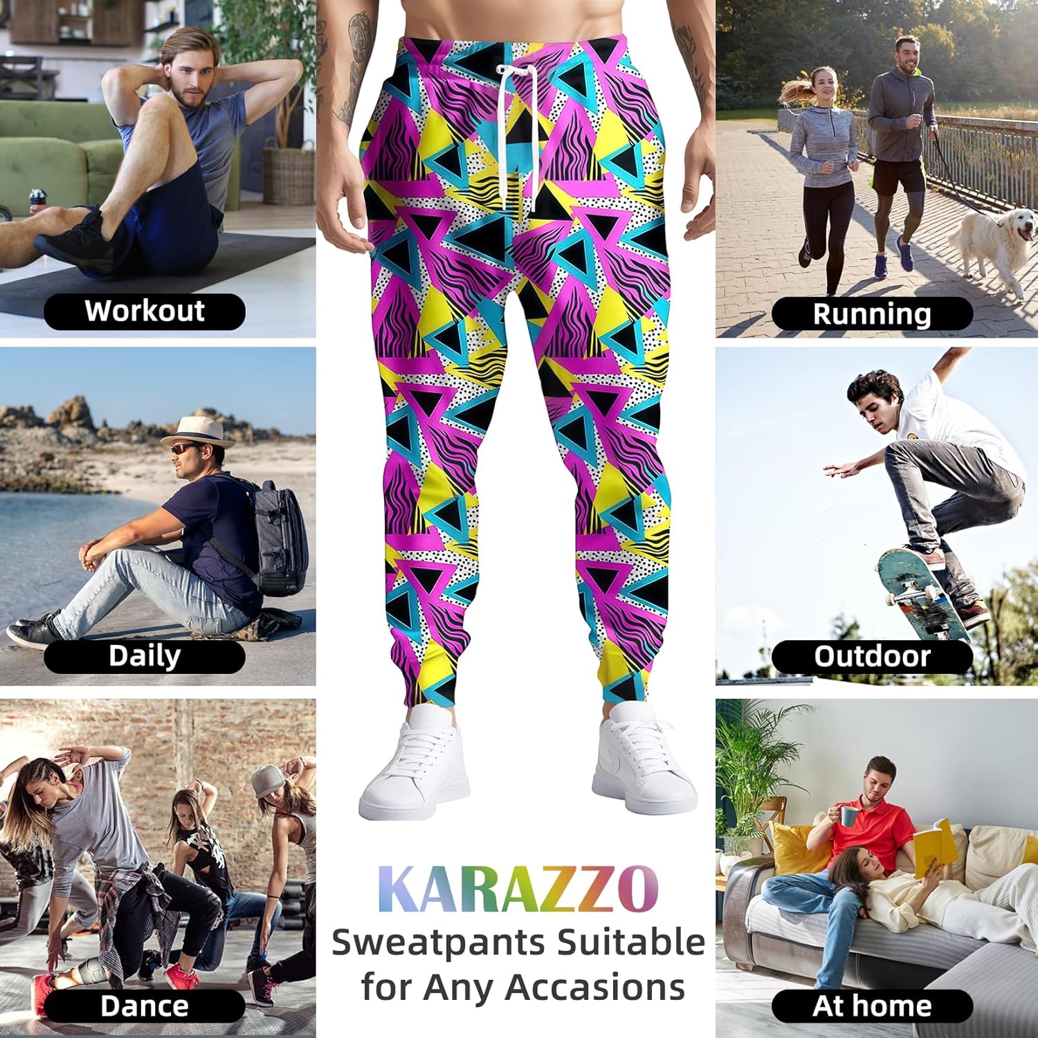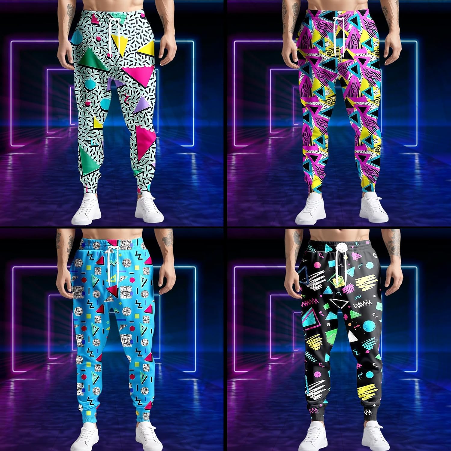 80s 90s Mens Joggers Pants Sports Funny Workout Running Printed Retro Sweatpants Casual Track Pants with Pockets