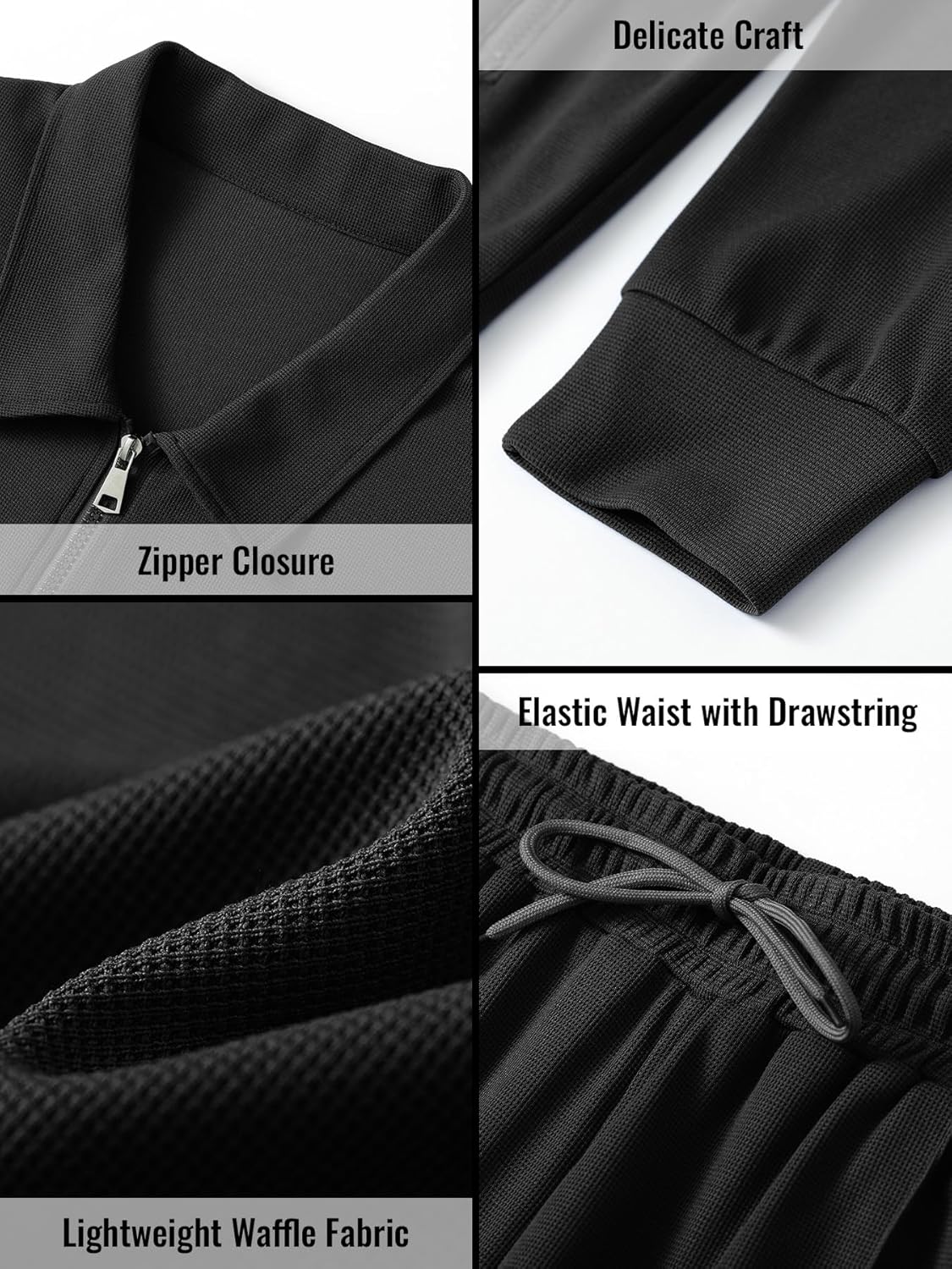 【High Quality Materia】: This waffle tracksuit 2 pieces outfit is made with high-quality waffle fabric, skin-friendly, soft, breathable and stretchy, allowing flexible movement.