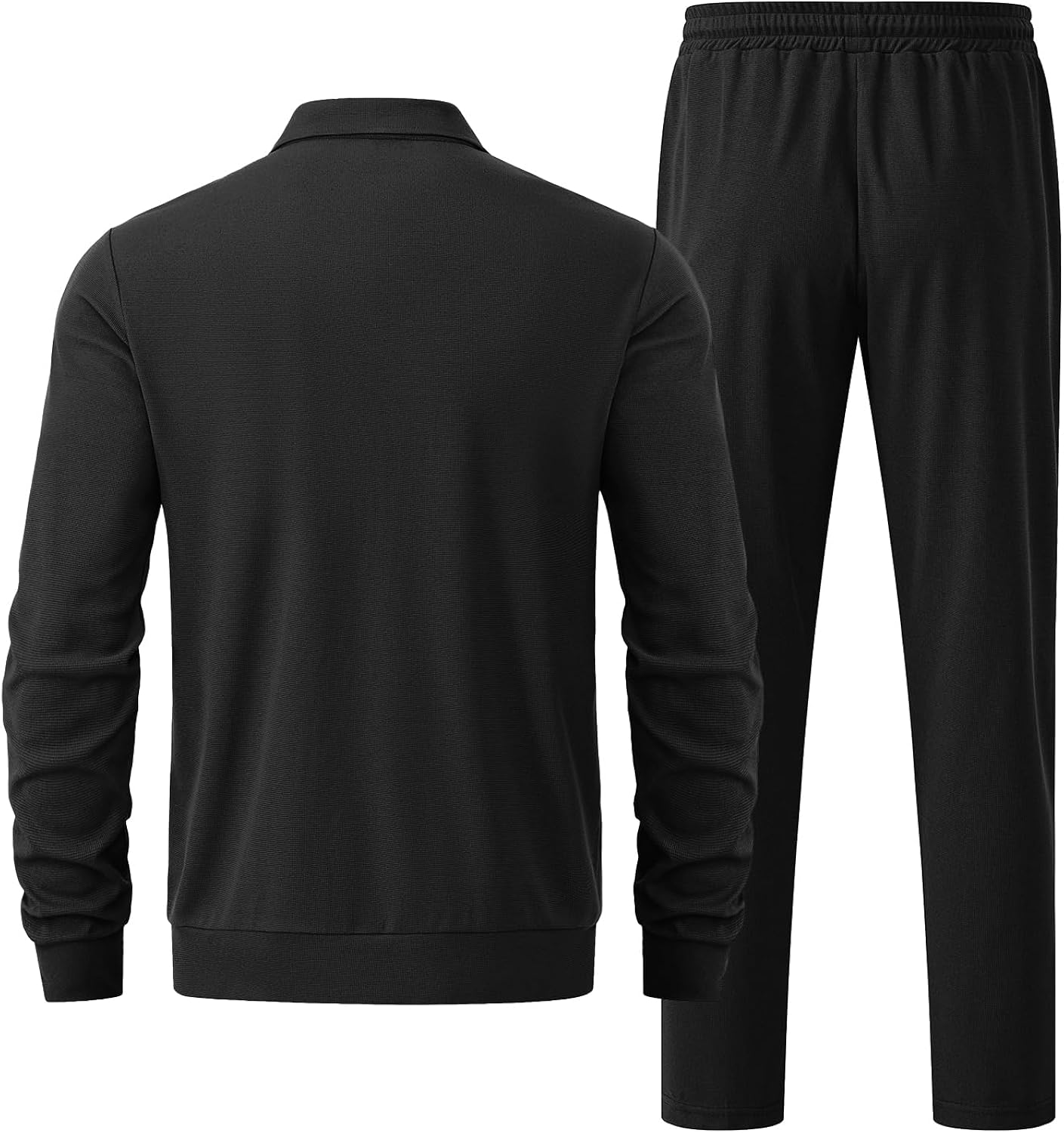 【Features and design】: The Mens tracksuit set consist of a full zip jacket and straight-leg pants. The top jacket features front full zip closure, lapel collar and 2 big slant pockets for your takeaway essentials. The straight standard fit casual pants features elastic waist with adjustable drawstring.