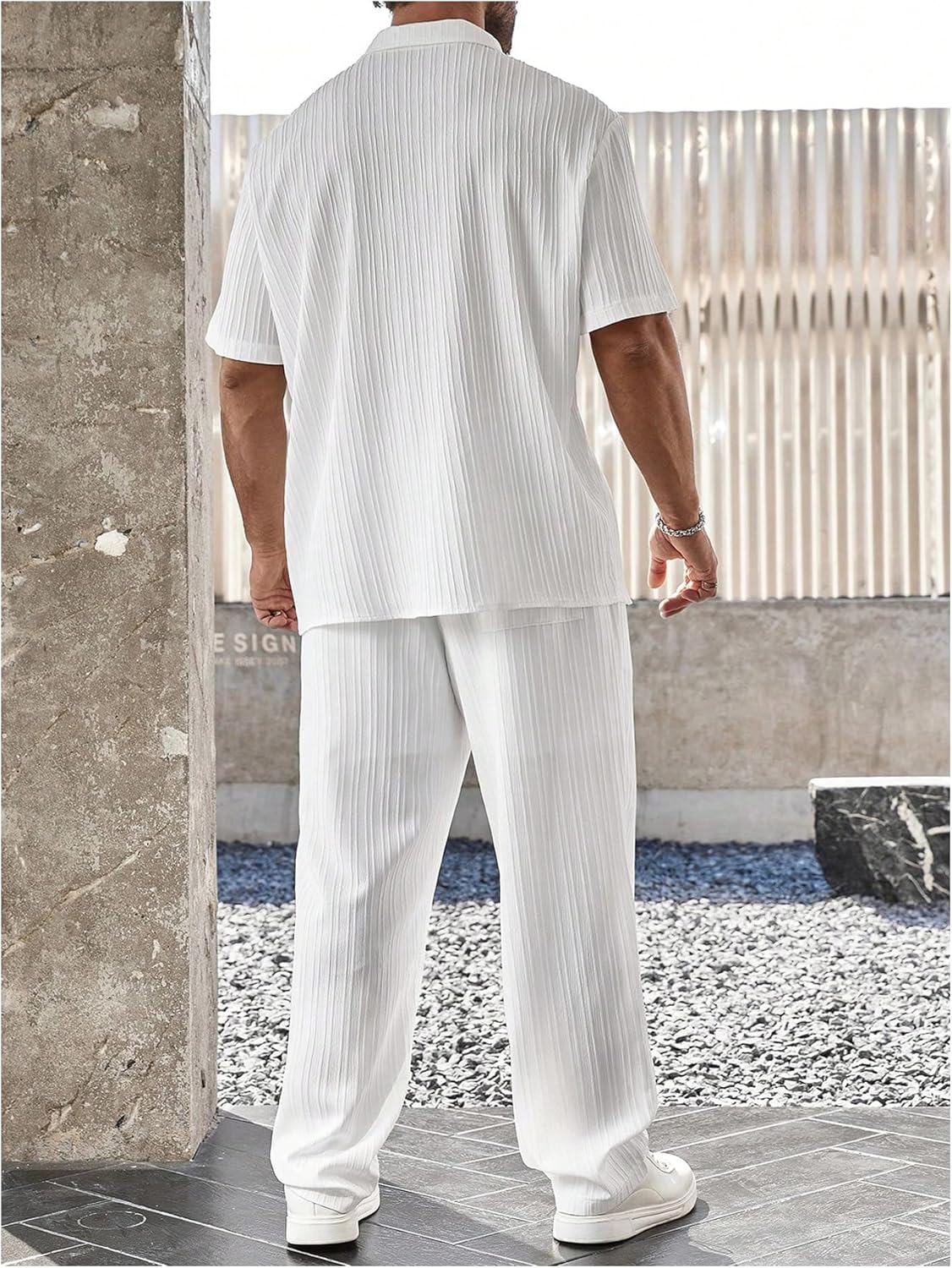 SOLY HUX Men's Plus Size 2 Piece Outfits Summer Short Sleeve Button Down Shirt and Pants Set